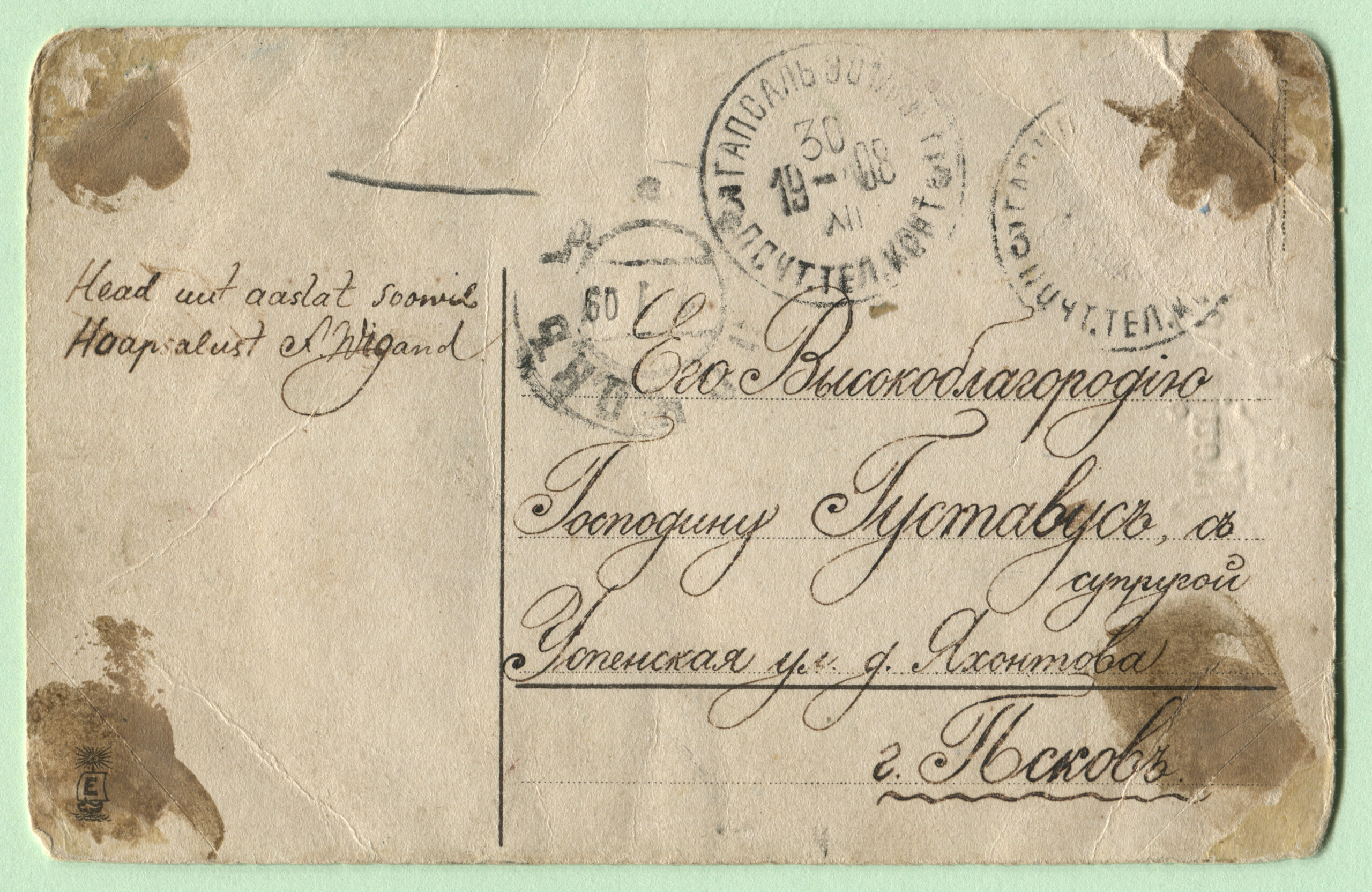 ERMi koguPostkaart saadetud 30.12.1908
