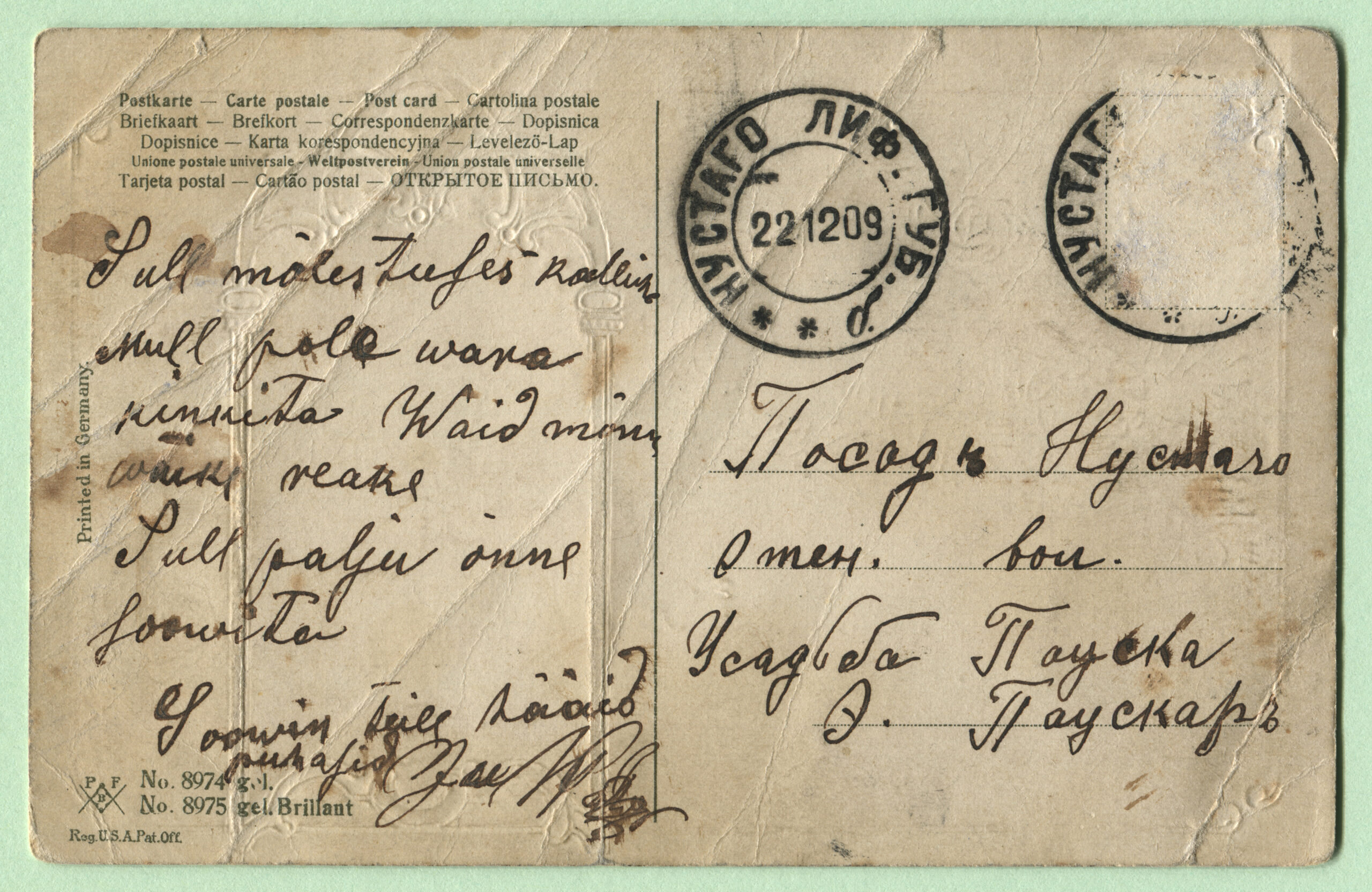 ERMi koguPostkaart saadetud 22.12.1909