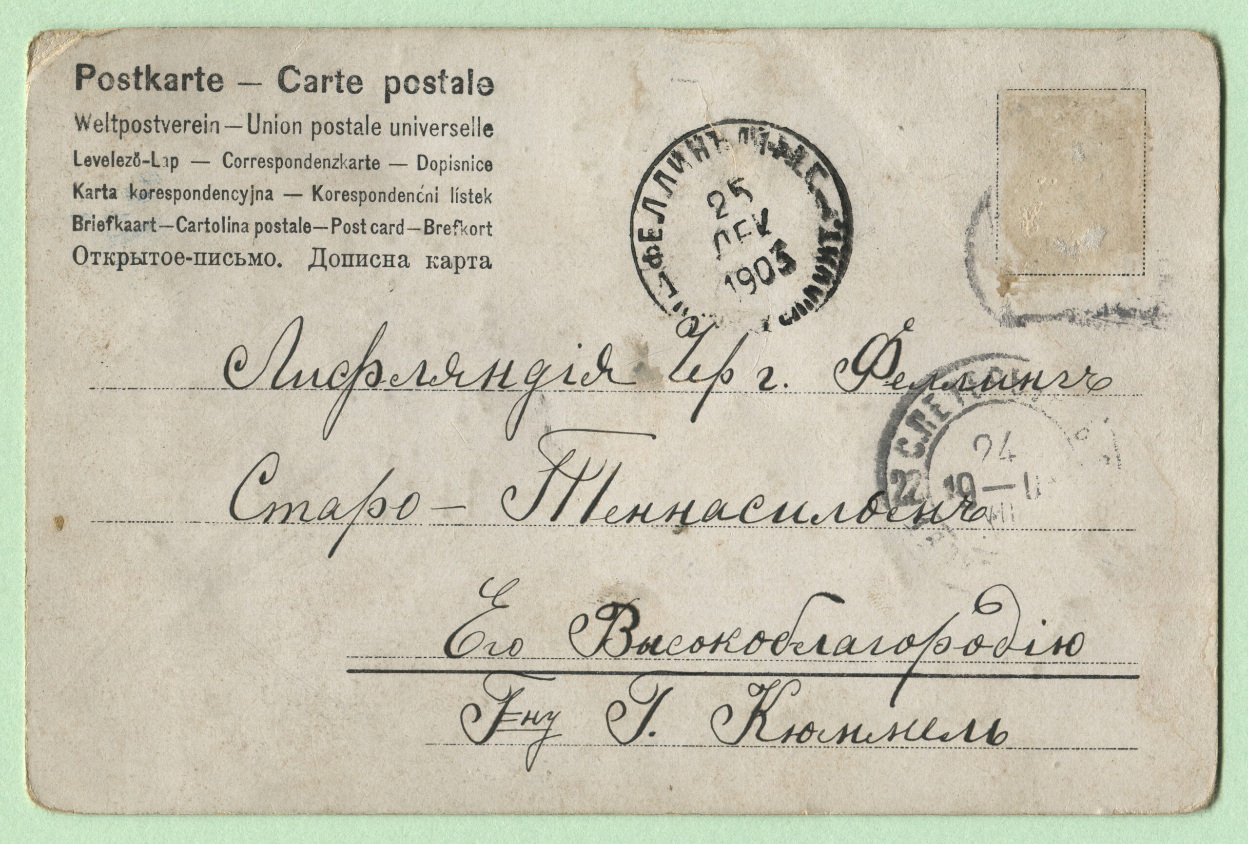 ERMi koguPostkaart saadetud 25.12.1903