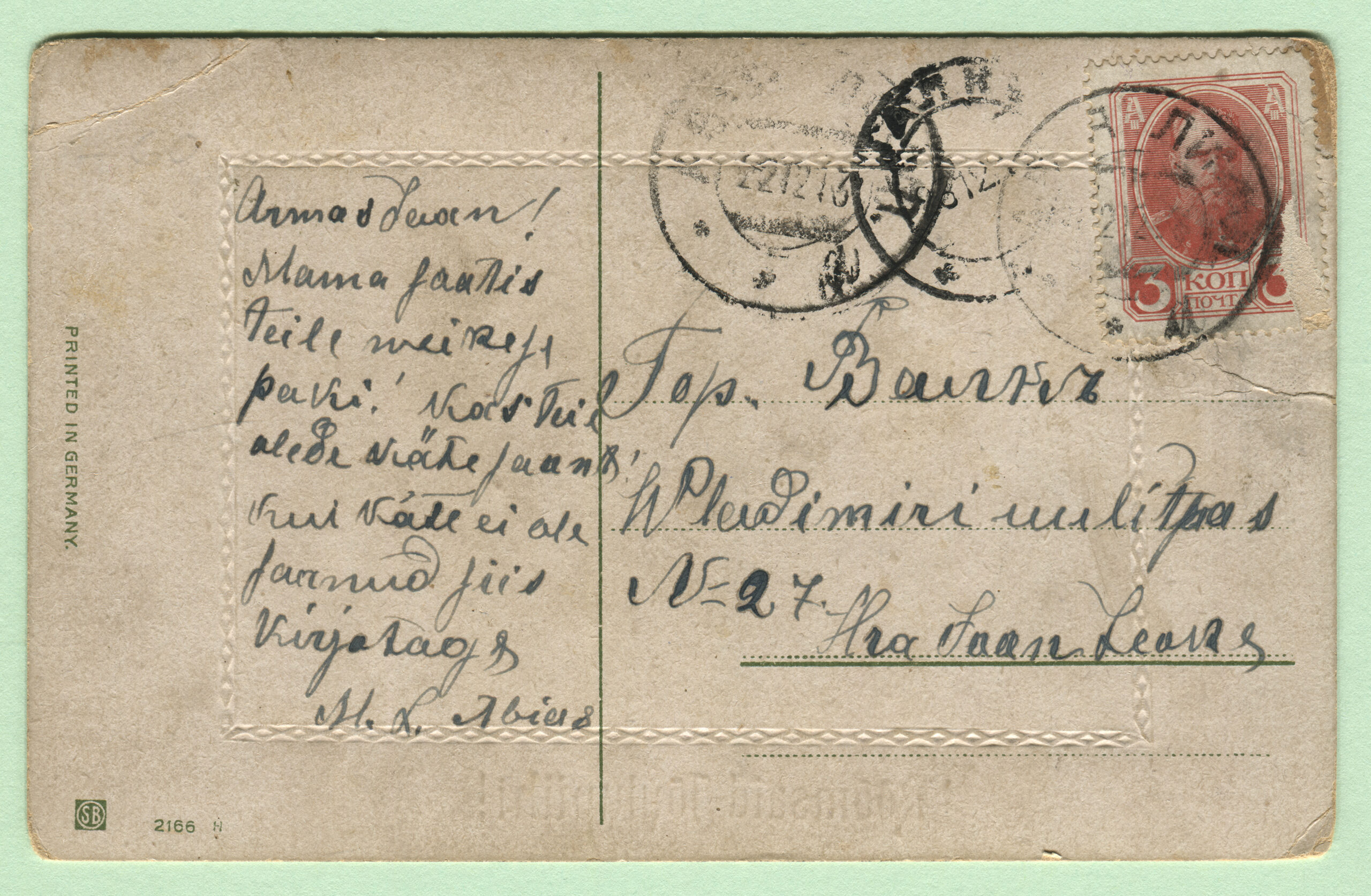 ERMi koguPostkaart saadetud 27.12.1905. Kirjastaja A. S. B. (A. Sala), Saksamaa
