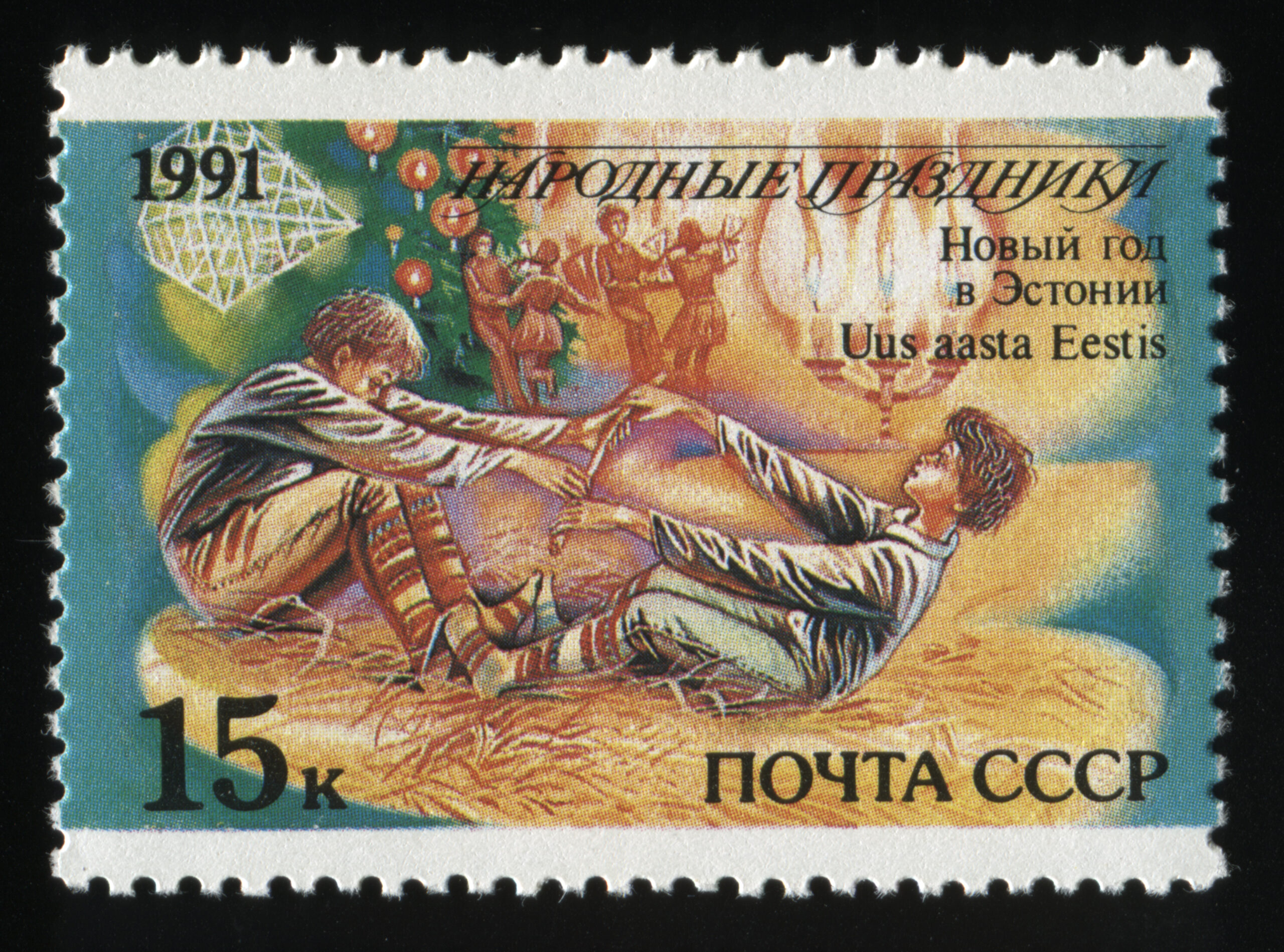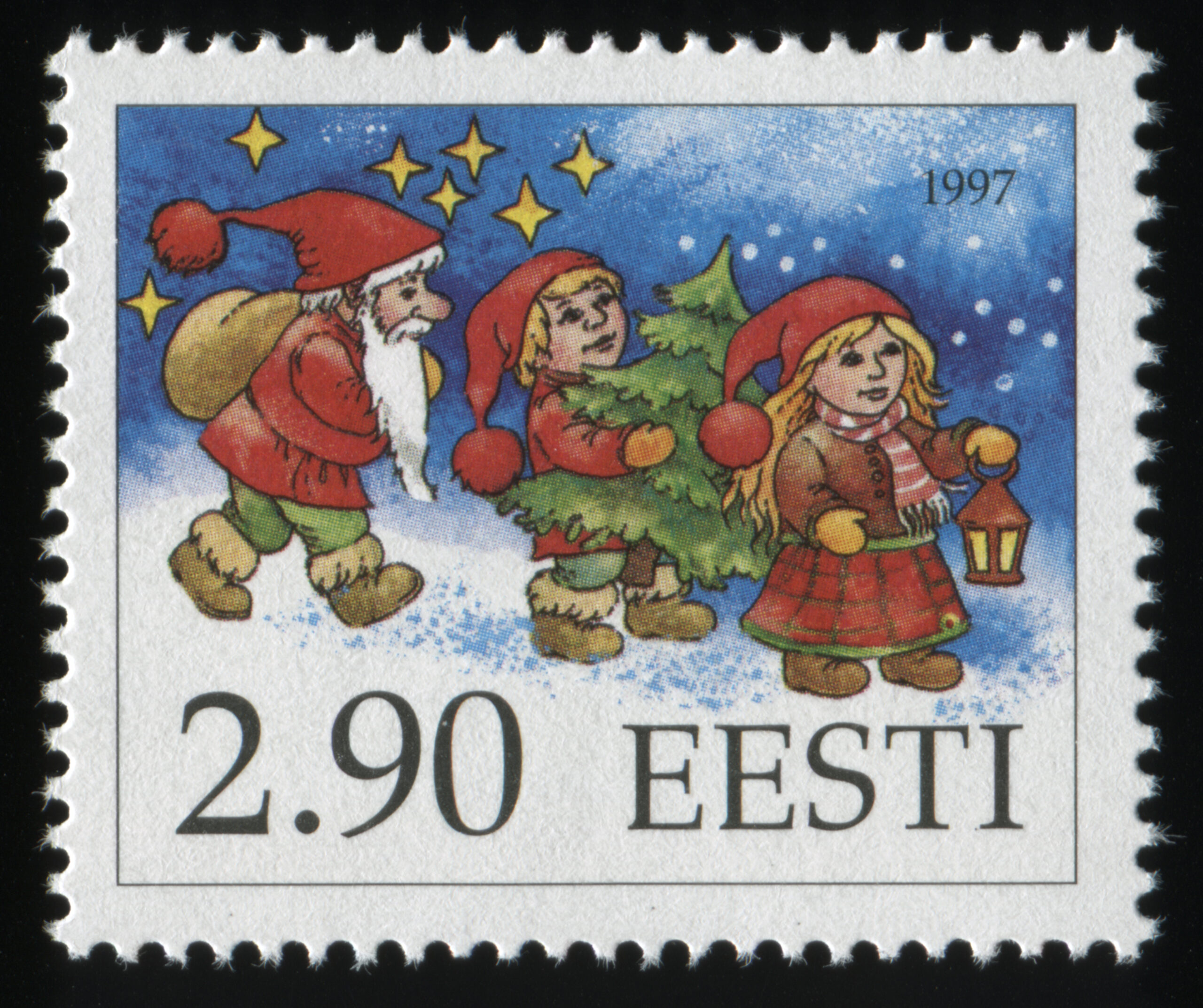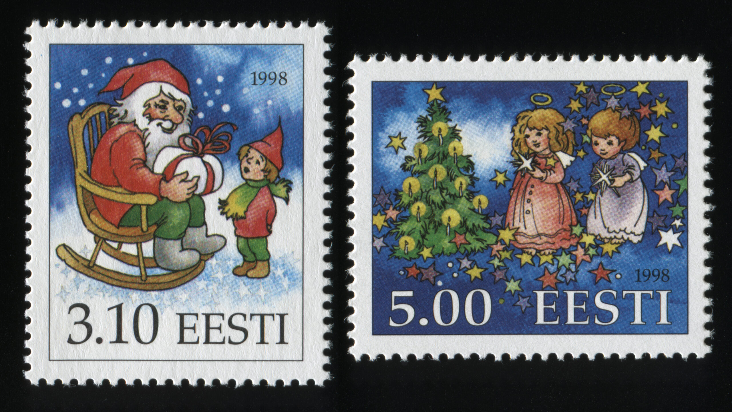 Esimene uusaasta postmark, millel on ka eesti keeles kirjutatud „Uus aasta Eestis“, ilmus 4. oktoobril 1991. Taasiseseisvunud Eesti esimene jõulumark tuli käibele 15. detsembril 1991. Varem olid kasutusel pühadeteemalised meene- ja heategevusmargid. Ka ühelt Kanada margilt leiame eestikeelse jõuluvana.