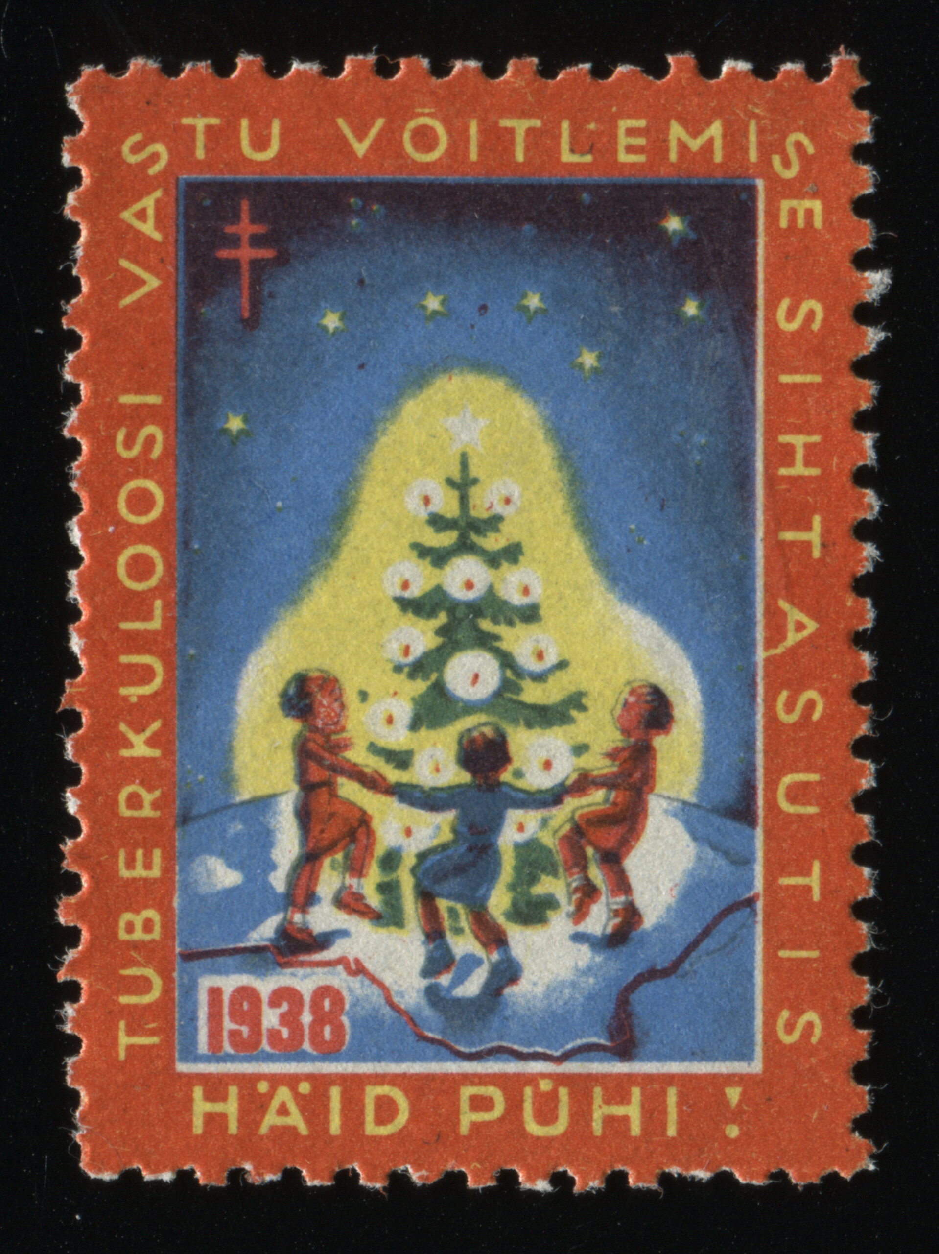 ErakoguPostkaardil meenemark „Häid pühi!“. Eesti Tuberkuloosi vastu võitlemise sihtasutus, 1938