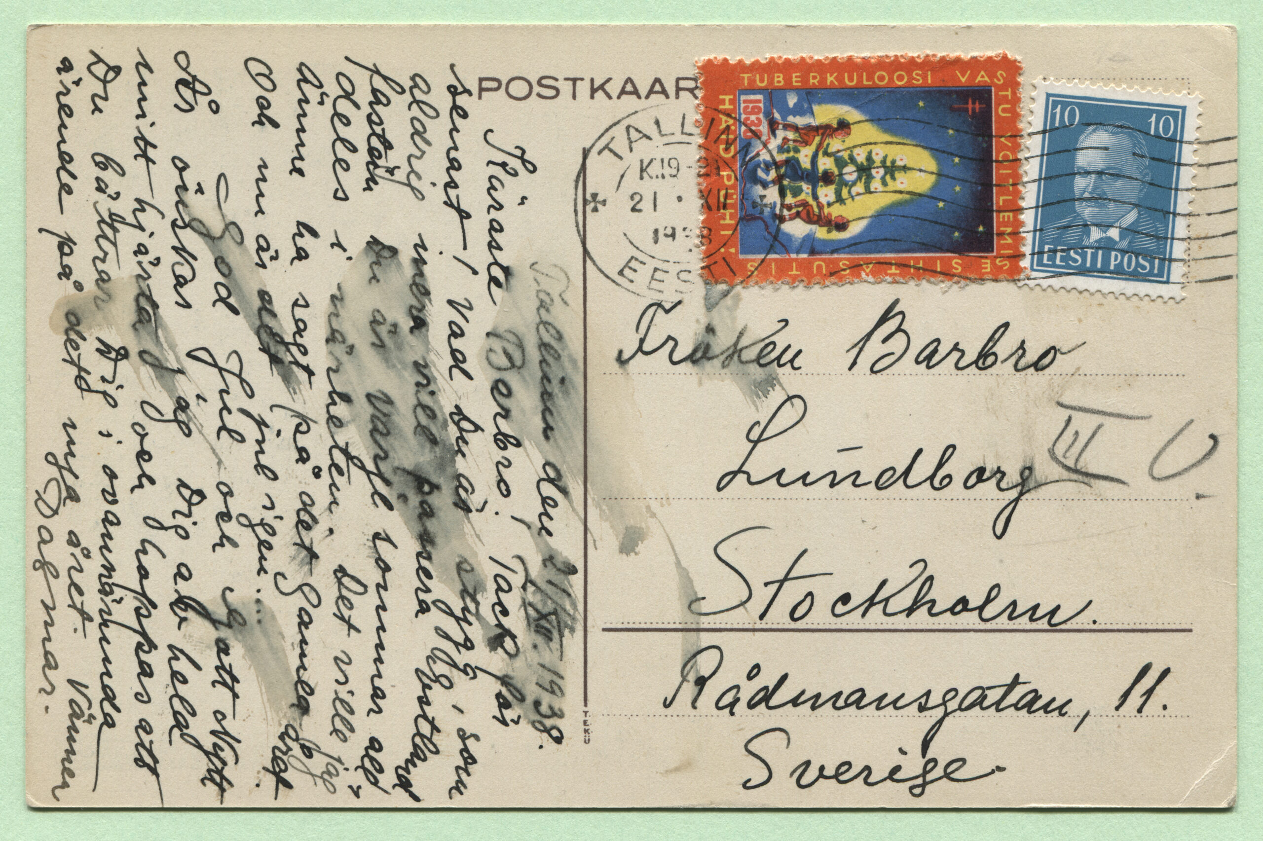 Erakogu (Helbe Liin)Postkaart saadetud 21.12.1938