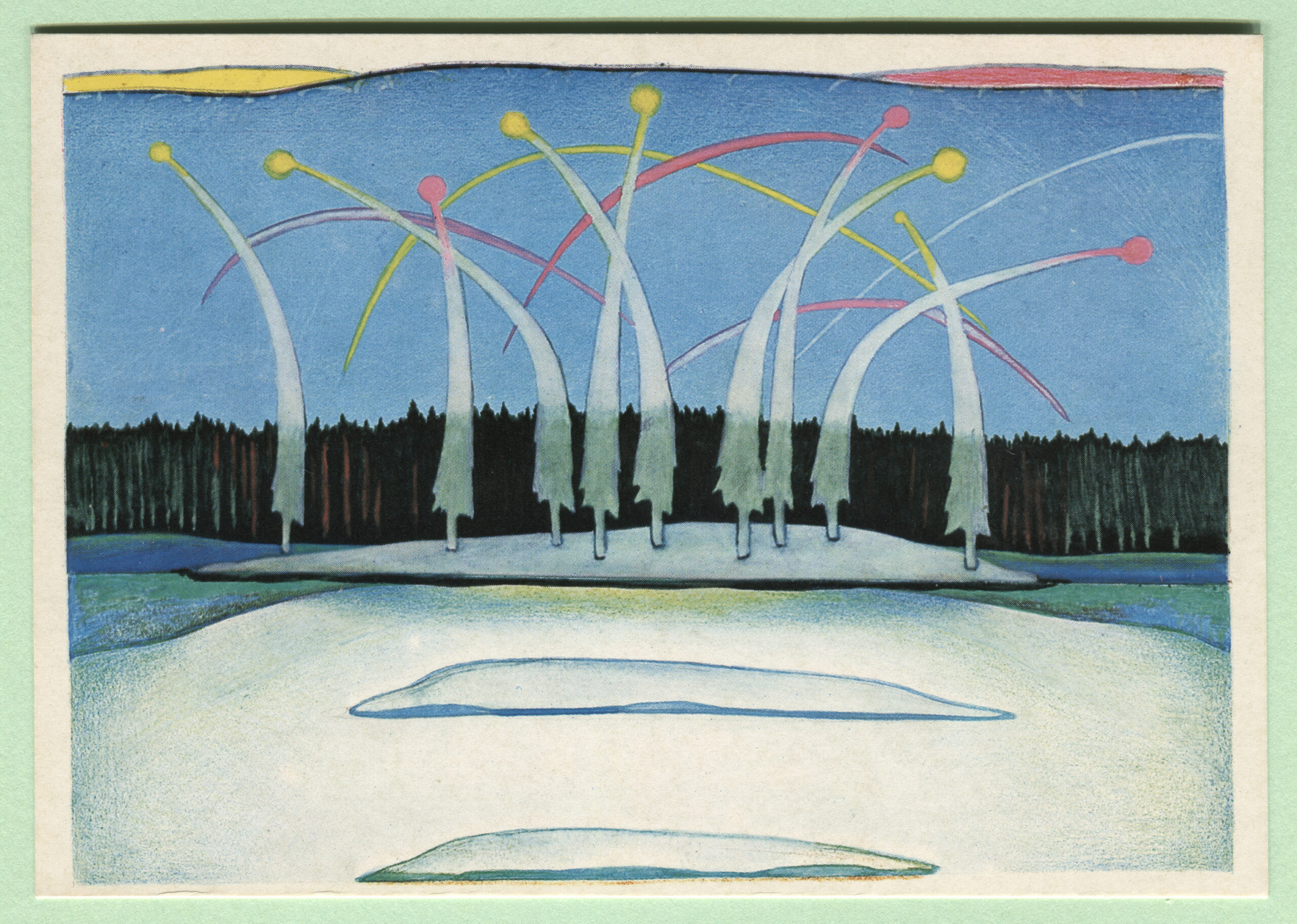 Erakogu (Helbe Liin)Postkaardi aluseks on kunstnik Vello Laanemaa siidimaal, u 2000
