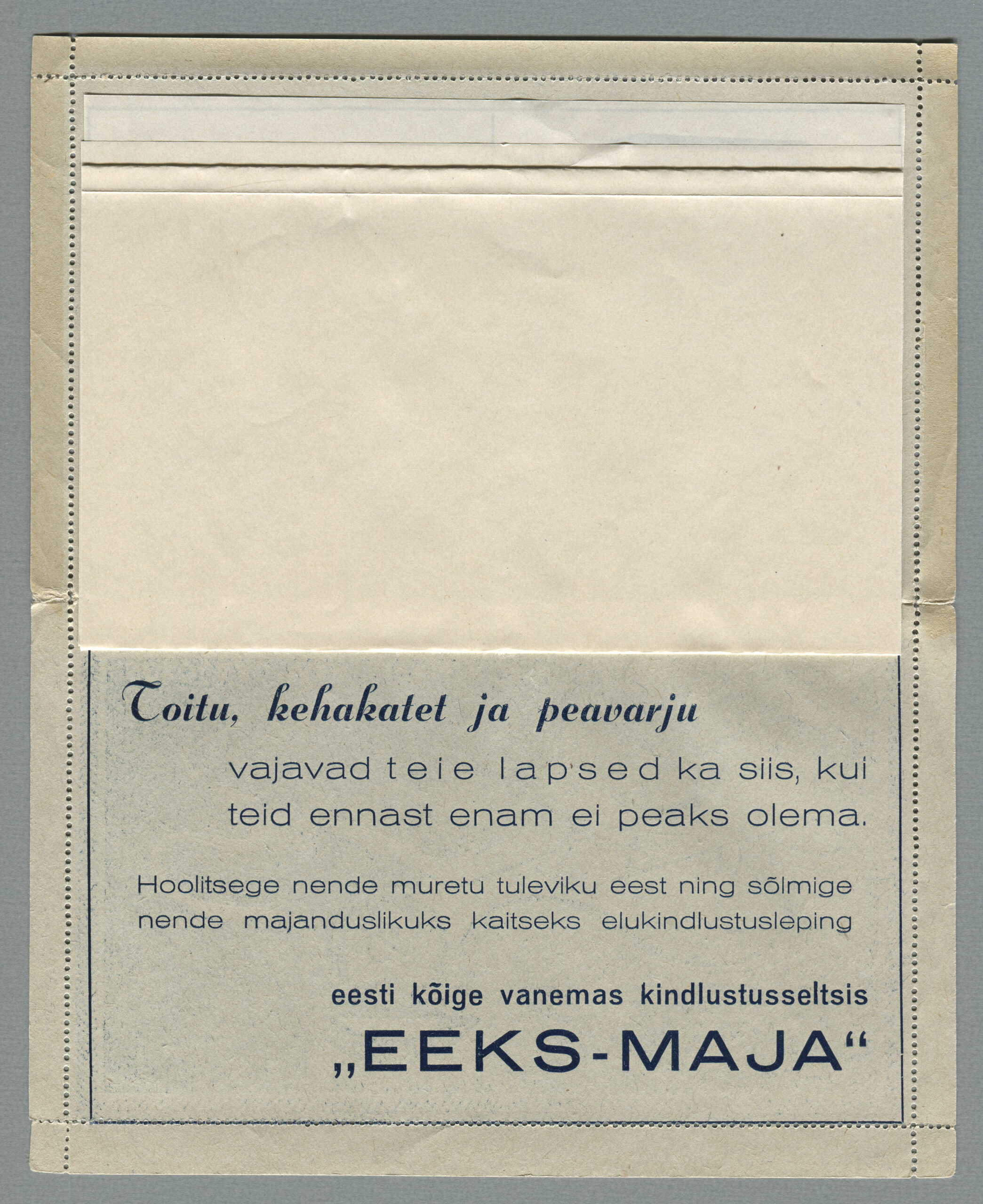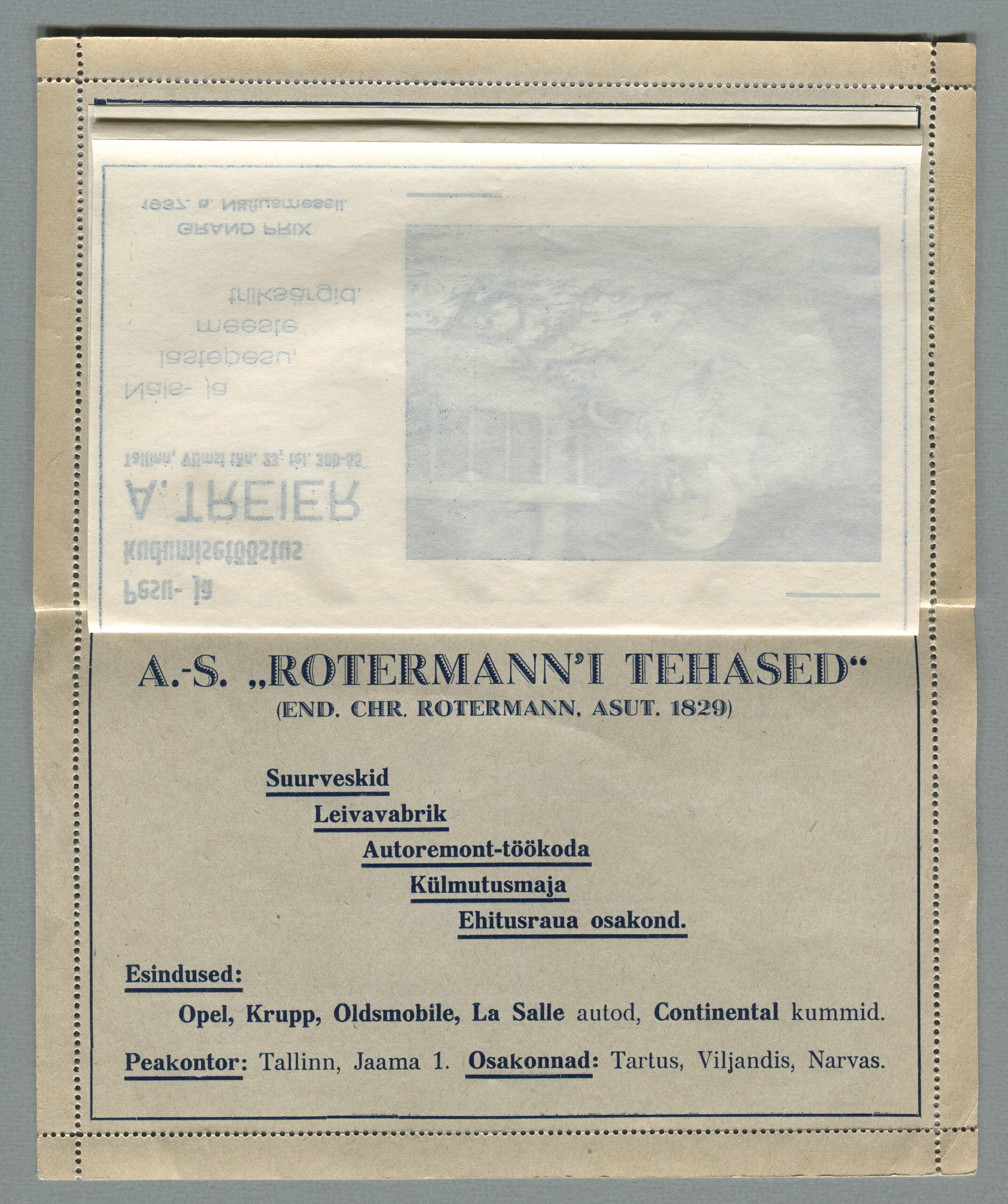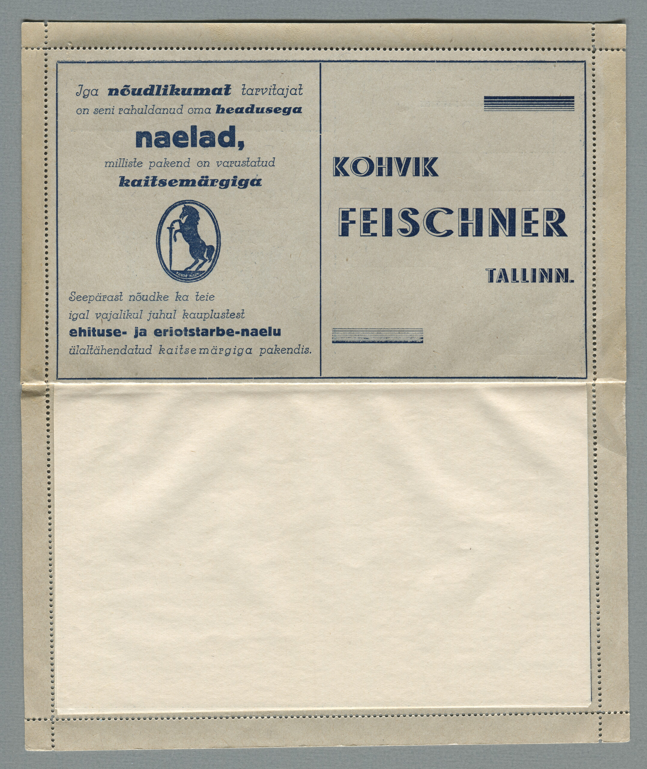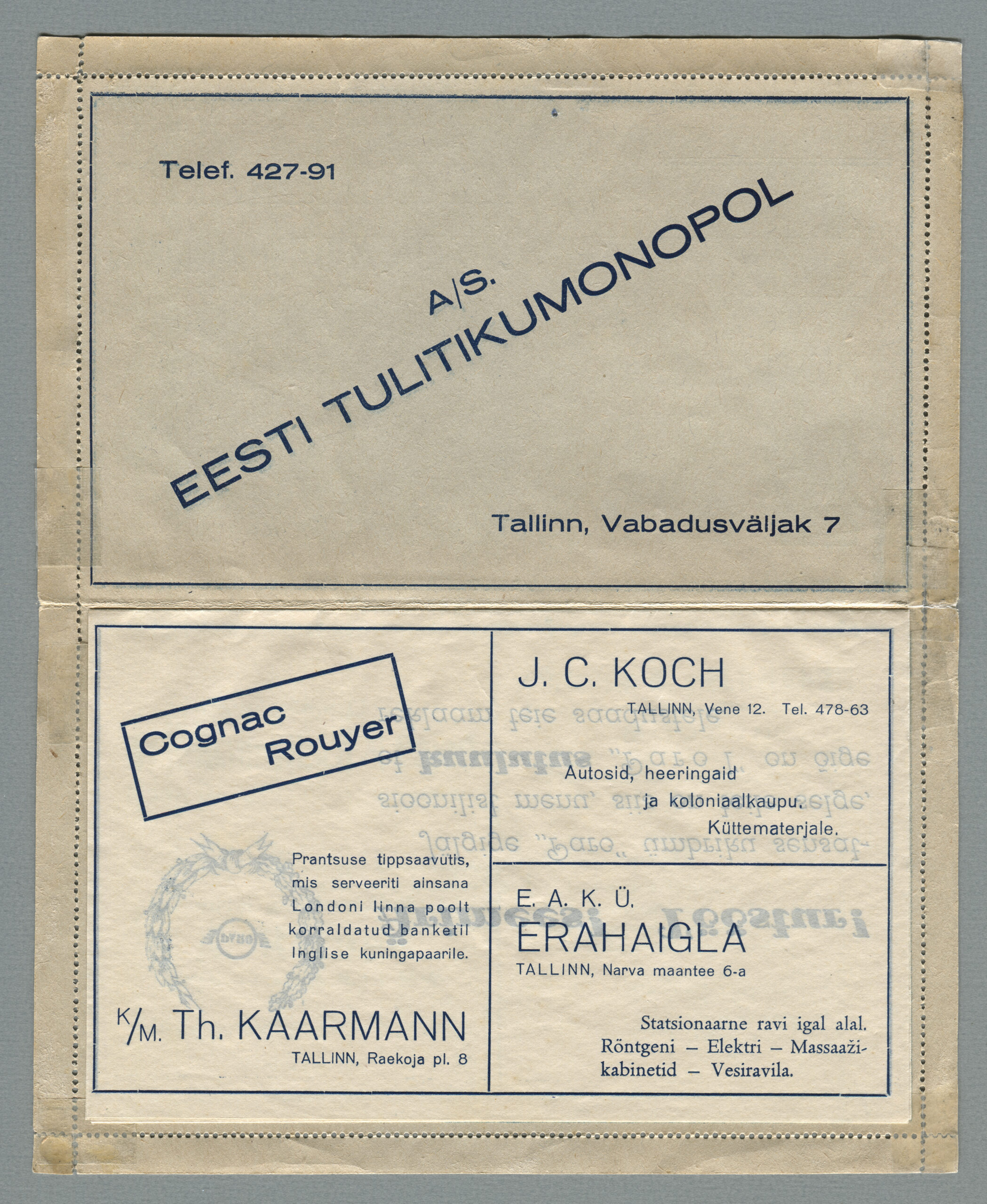Ideena polnud reklaamiga varustatud tervikasjad tegelikult midagi uut. On teada, et neid esines Tsaari-Venemaal, ka mujal. Mõnel kaartkirja seerial (nr 2, 5, 6, 18) on märgitud Pat. Berne 6538/37, millest võib järeldada, et idee oli patenteeritud.