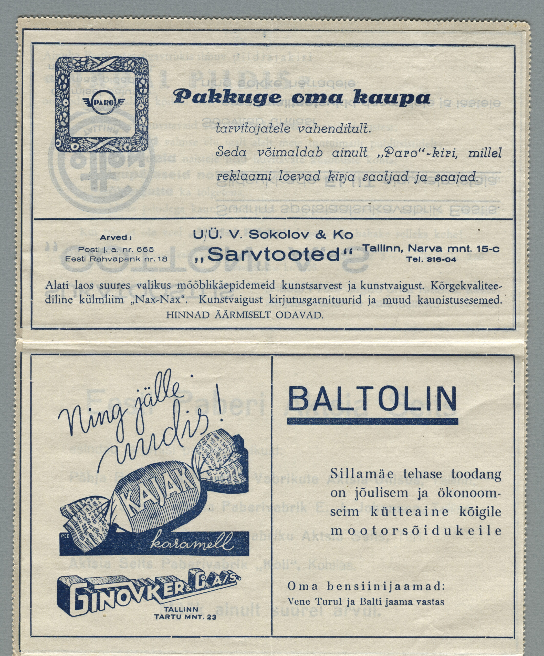 Heinrich Köhleri oksjonimaja sõnutsi müüsid nad Paro kaartkirjade täiskomplekti 2015. aastal, mis oli osa suurest Dr. Hubert Schrodinger Balti filateeliakollektsioonist. Oksjon toimus 25. septembril 2015. aastal Wiesbadenis. Puhas, väikeste vigadega PARO kaartkirjade kogu alghind oli 2000 eurot ja see müüdi 2400 euroga.