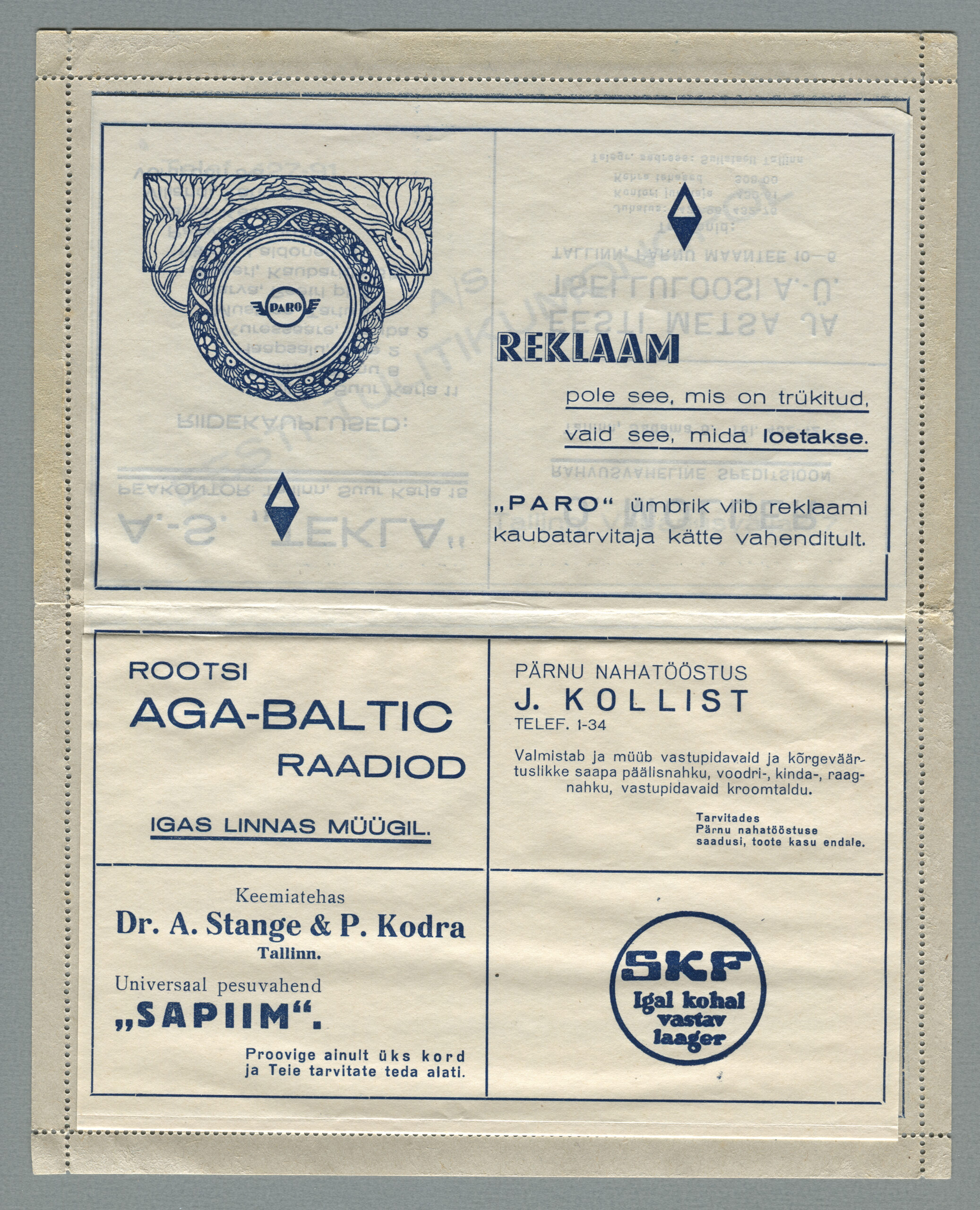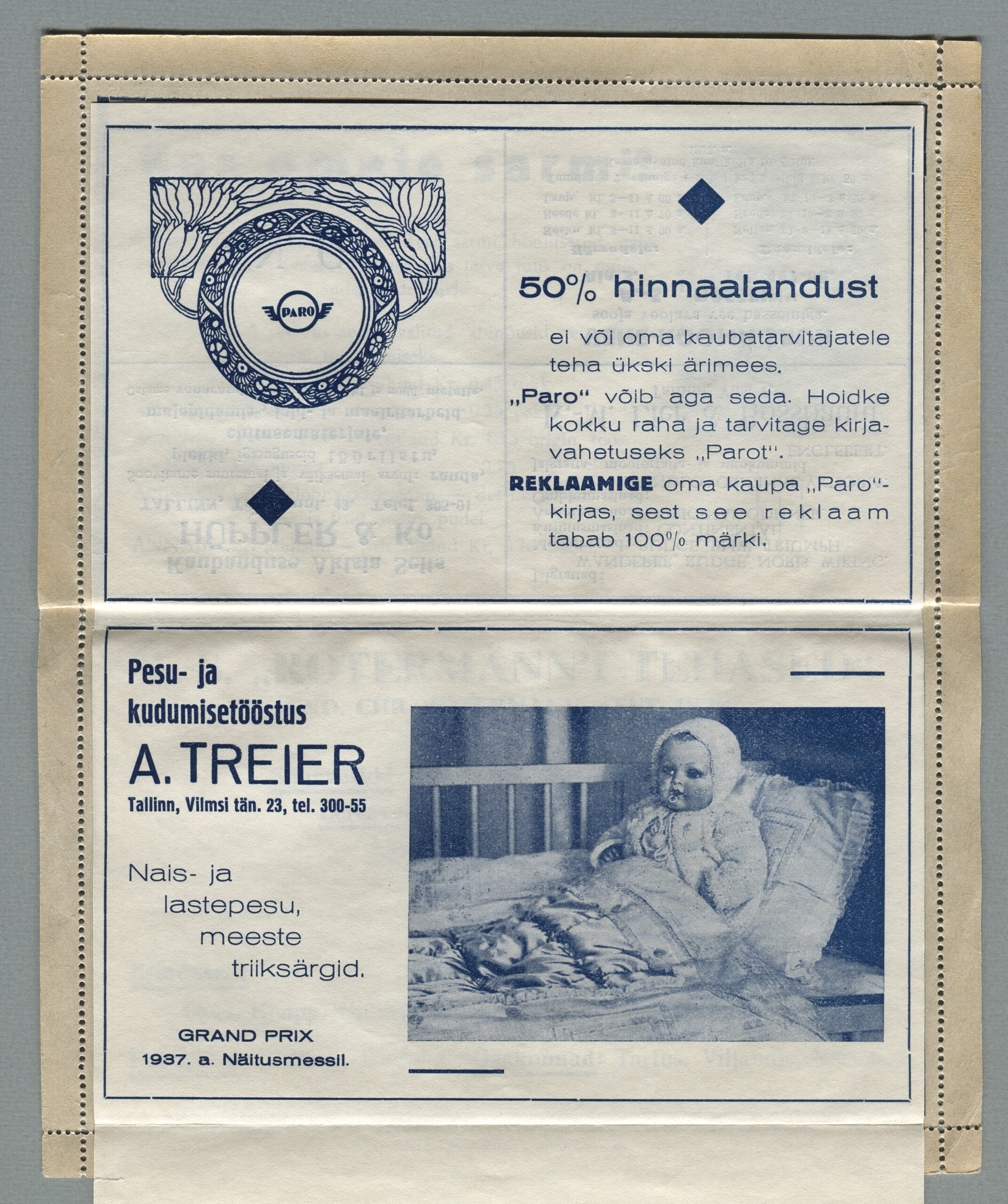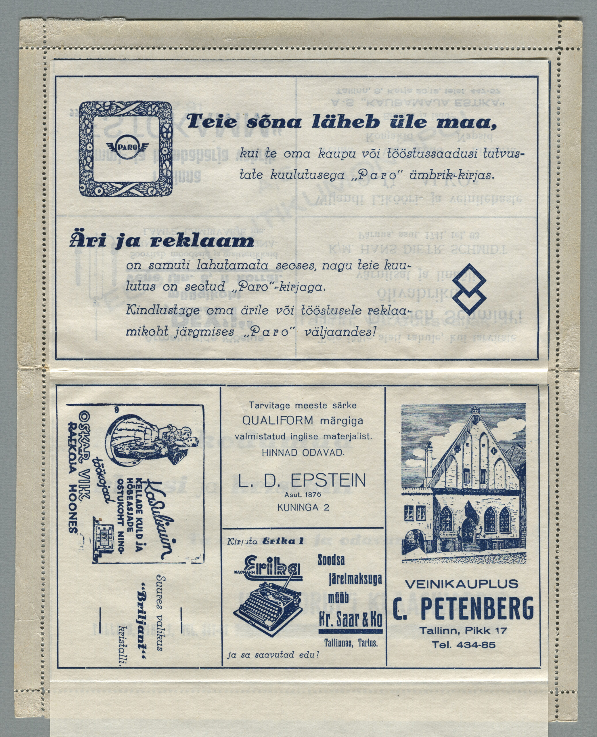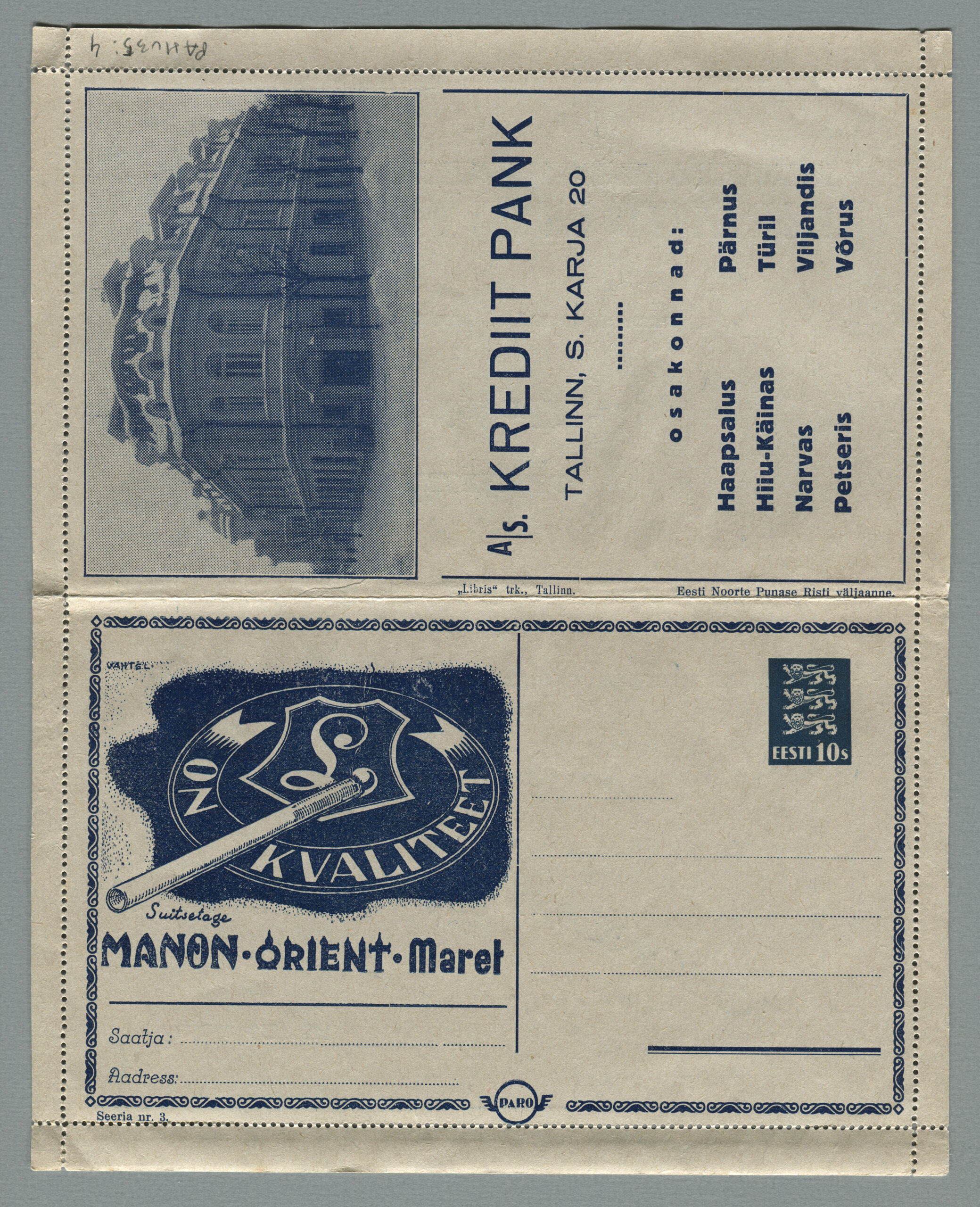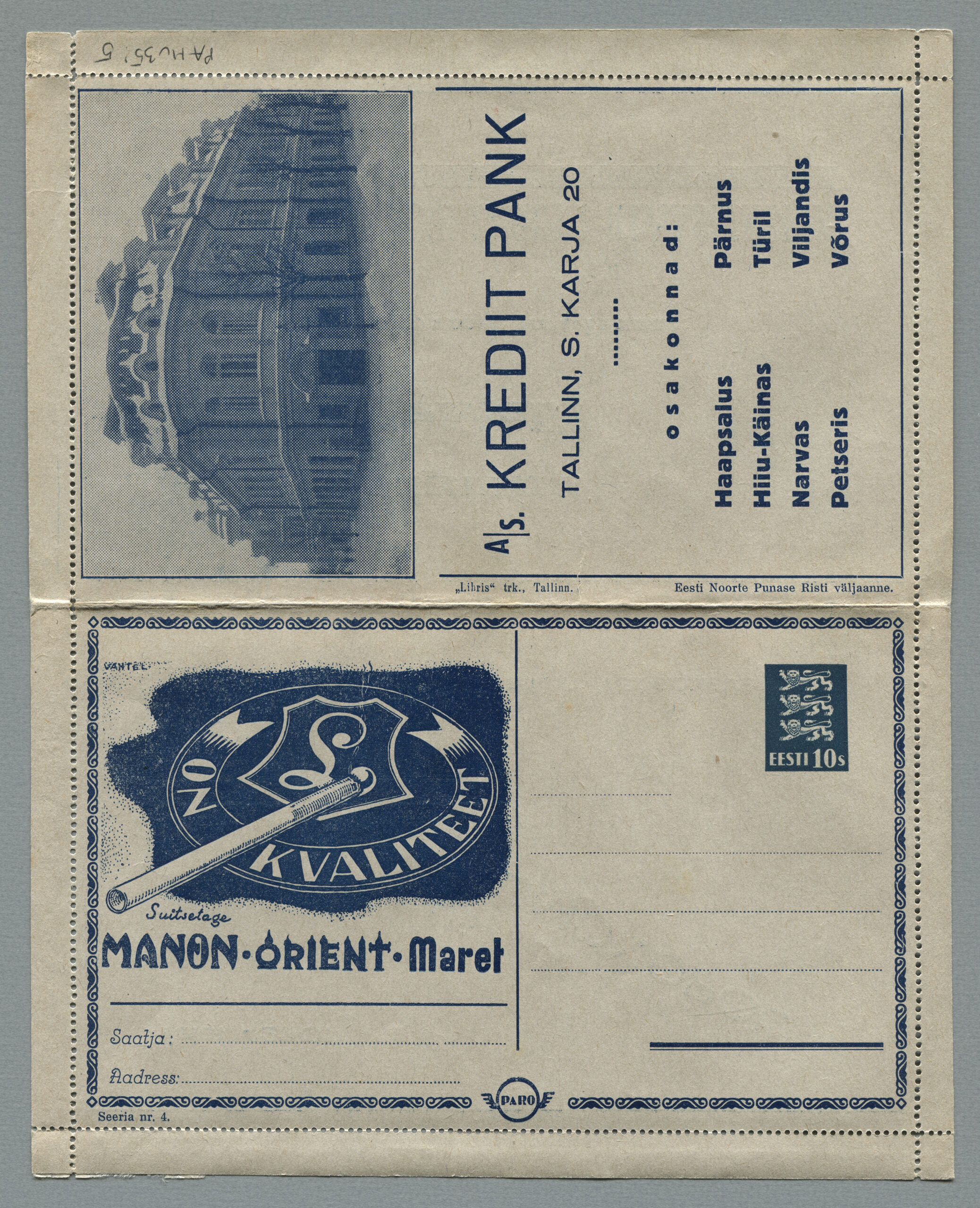 Heidame korra pilgu Paro kaartkirjade taustale. Eesti teedeministri Nikolai Viitaki määrus (Riigi Teataja nr 101, 20.12.1937, lk 1988) ütleb nii: „23. detsembril 1937 lastakse müügile ja käibele frankeeritud reklaamümbrikud Paro nimetuse all. Ümbrikud on valmistatud Eesti Noorte Punase Risti väljaandena Eesti Punase Risti poolt ja varustatud 10-sendilise postmargi kujutusega Postivalitsuse poolt.“
