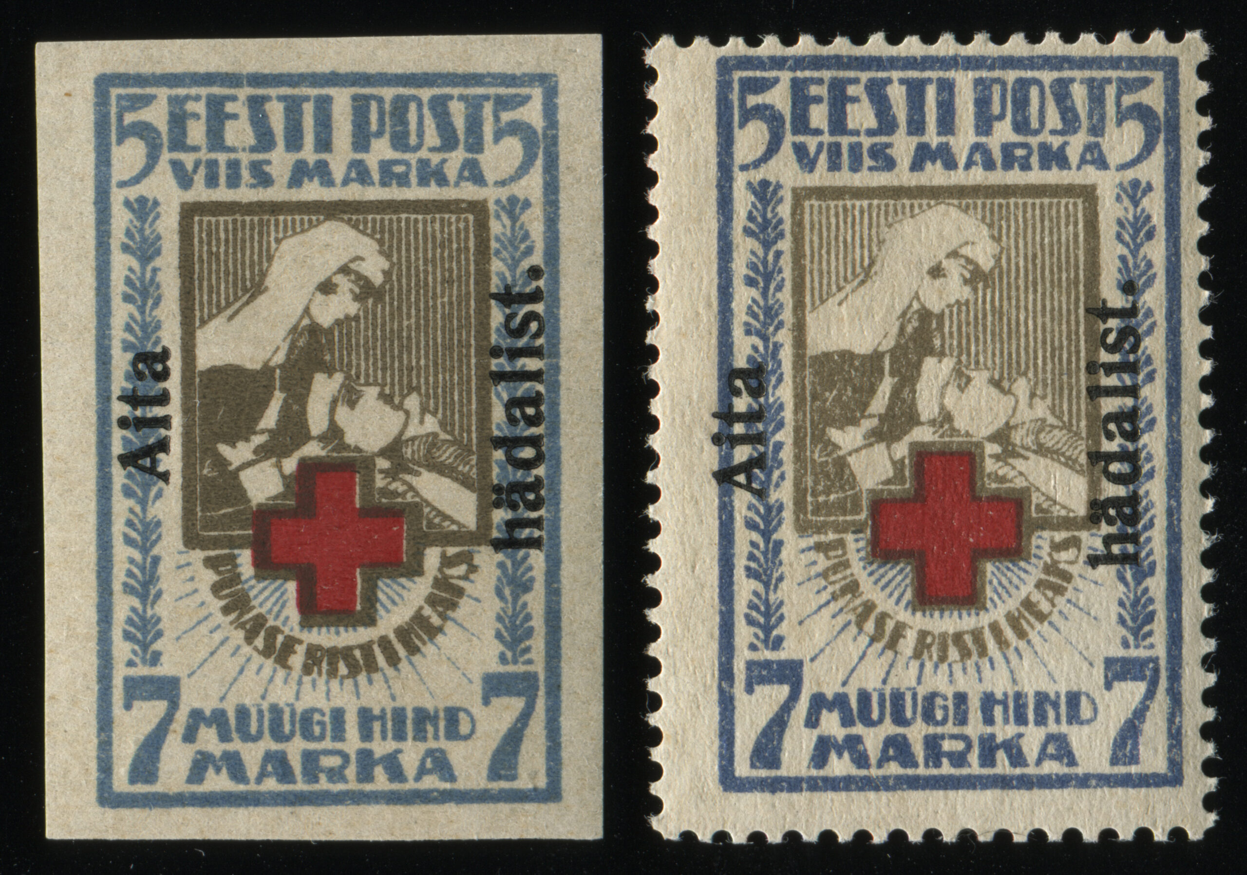 Erakogu„Punase Risti heaks“ mõeldud markide variandid: lõigatud, hammastatud ja lõigatud margid horisontaalse hammastusega. Lõigatud margid olid müügil 1.08.1921–15.06.1926, hammastatud margid 26.04.1922–31.12.1927. Margid kehtisid kuni 29.02.1928.