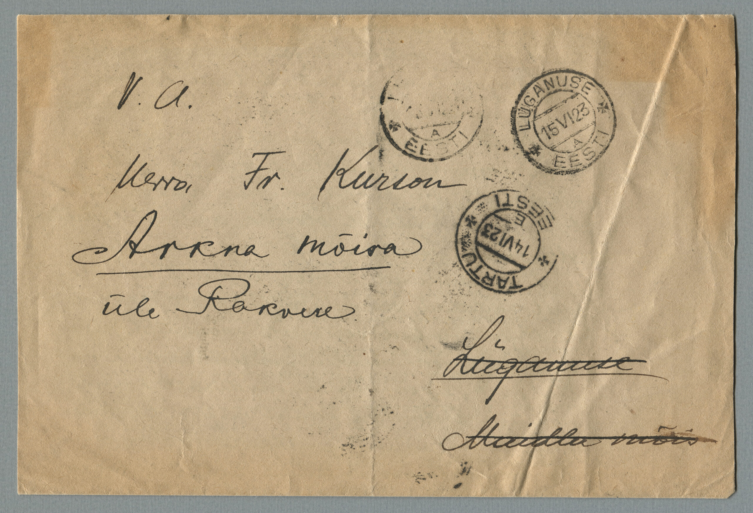 ErakoguKiri on saadetud Tartust 14.06.1923 Lüganusele 15.06.1923 Rakverre 18.06.1923.