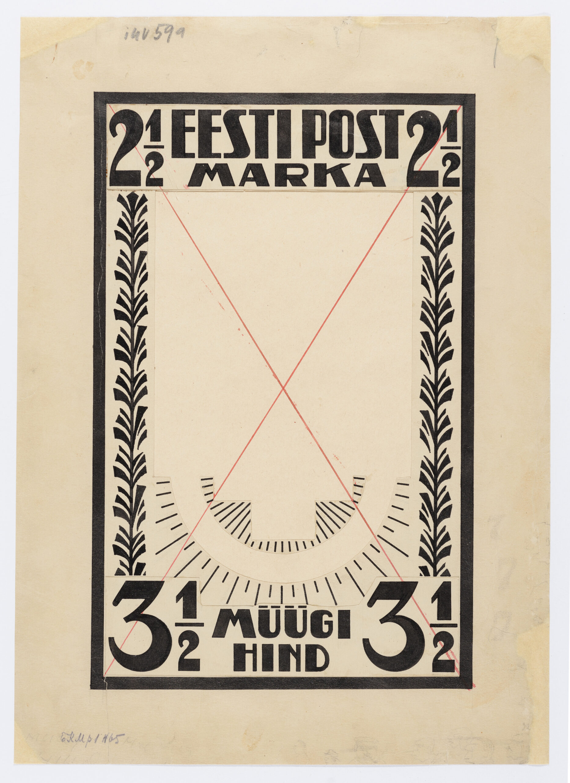 Paremal all Posti Peavalitsuse ülema Hindrek Rikandi (22.12.1874–27.04.1940) märkus „Margi joonistus on postiametkonnale vastu võetav“.