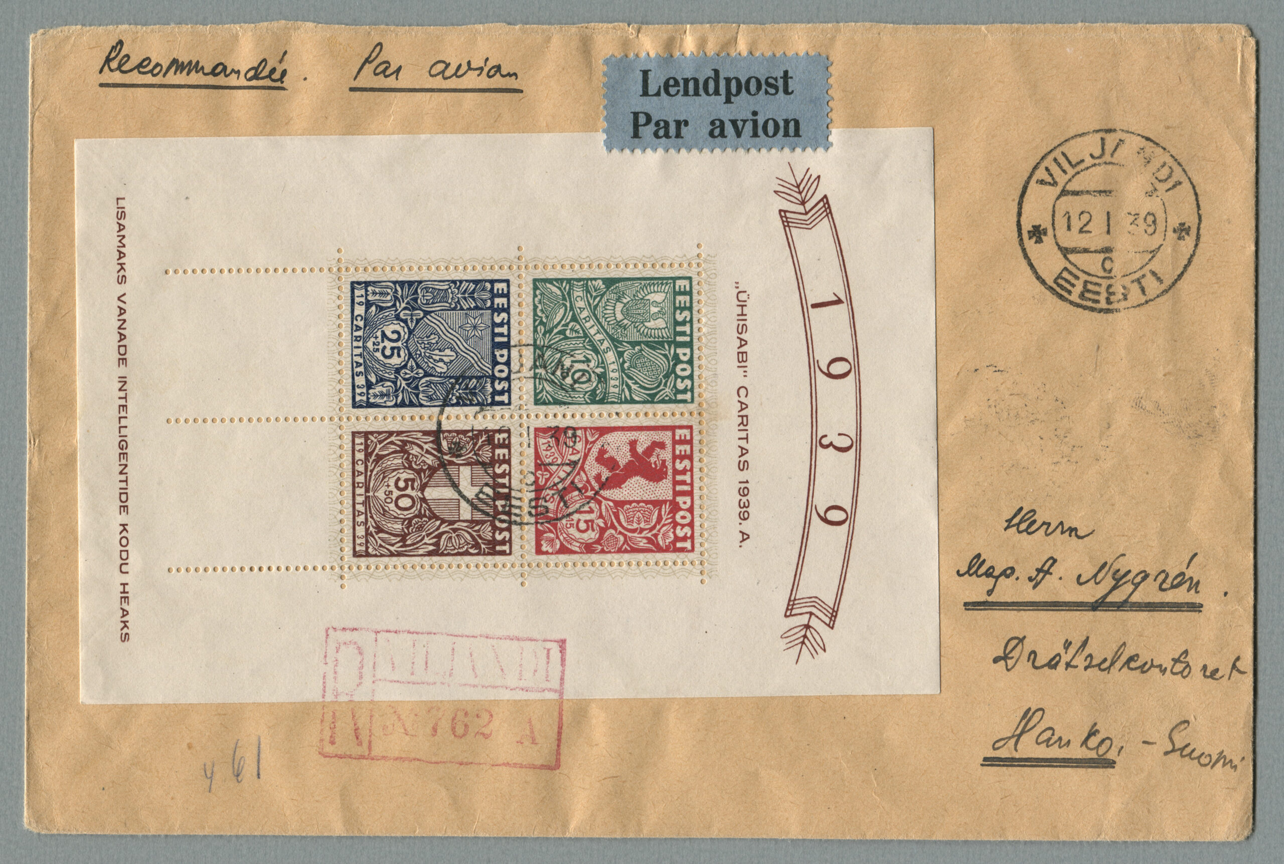 ERMi koguTähitud kiri Tallinnast 5.02.1938 Helsingisse 7.02.1938.