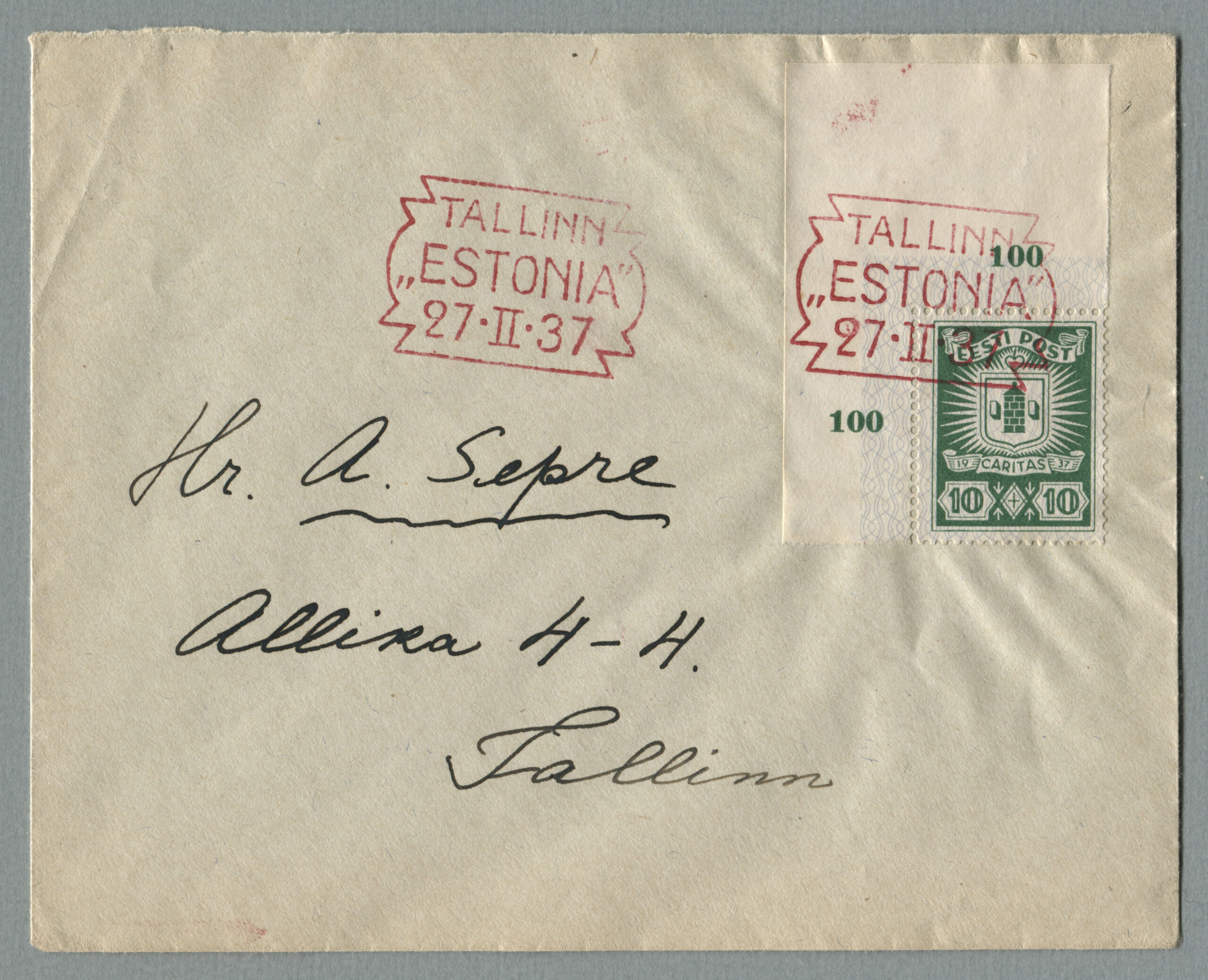 ERMi koguTähitud kiri eritempliga „Tallinna IV Eesti filatelistide päev“ 1.05.1937, saadetud Tallinna.