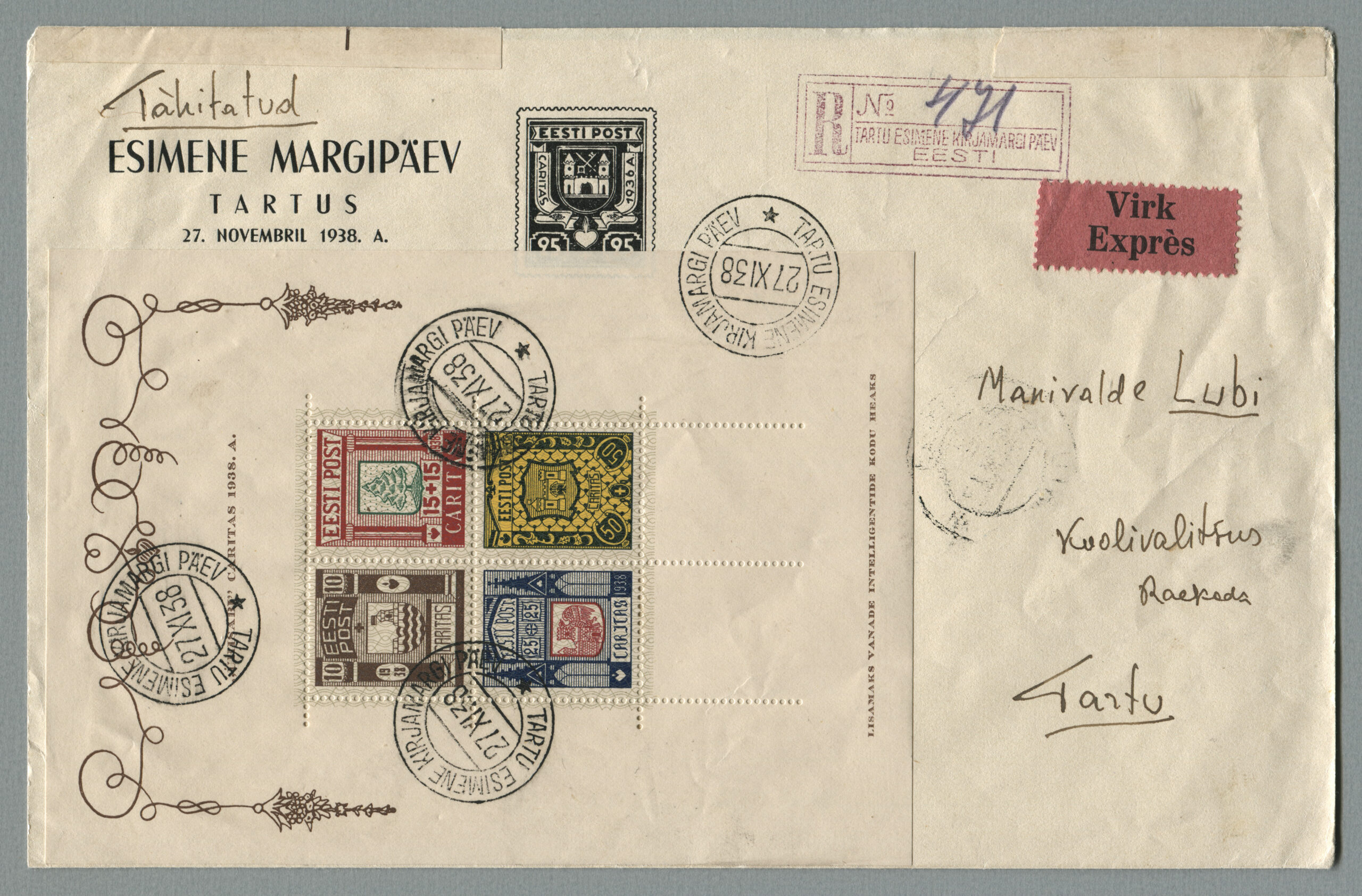 ERMi koguTähitud kiri (kohalik) saadetud Tartus 27.09.1938.