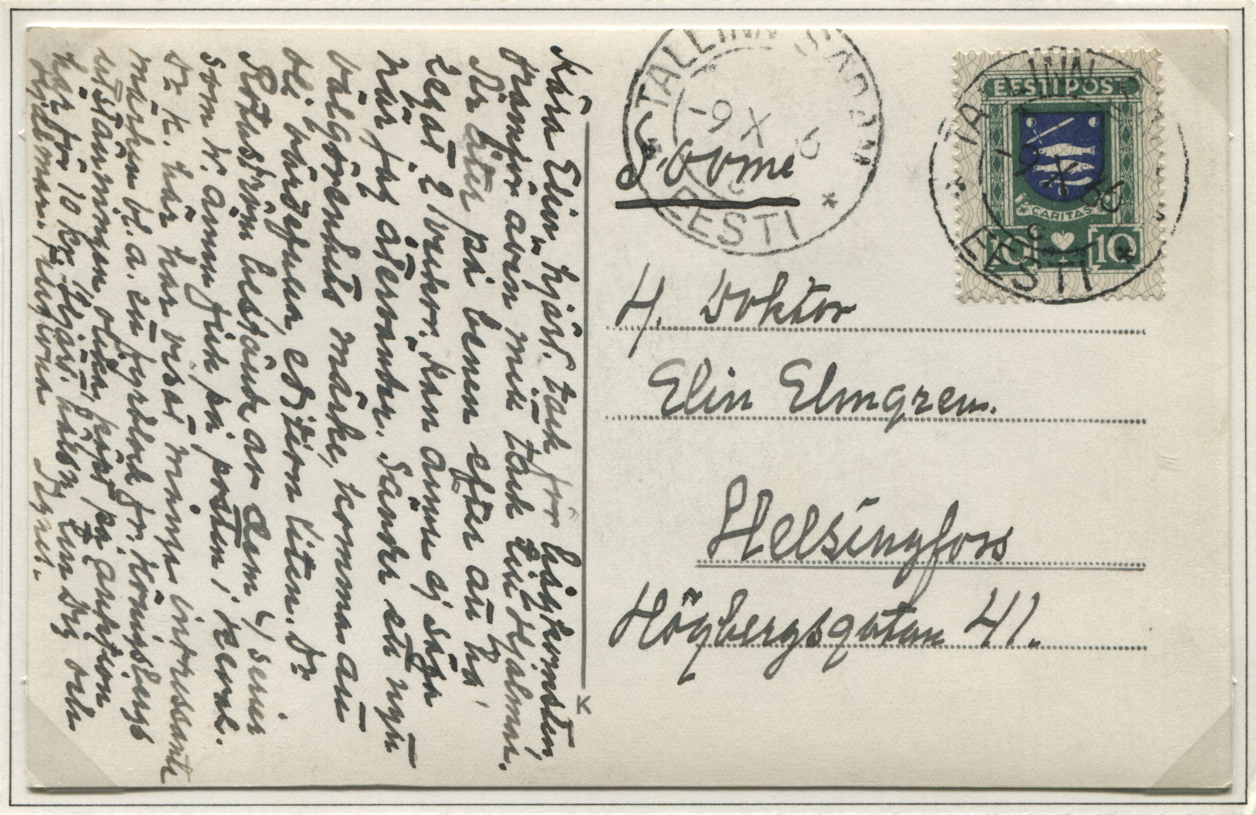 ERMi koguPostkaart Tallinnast 9.10.1936 Helsingisse