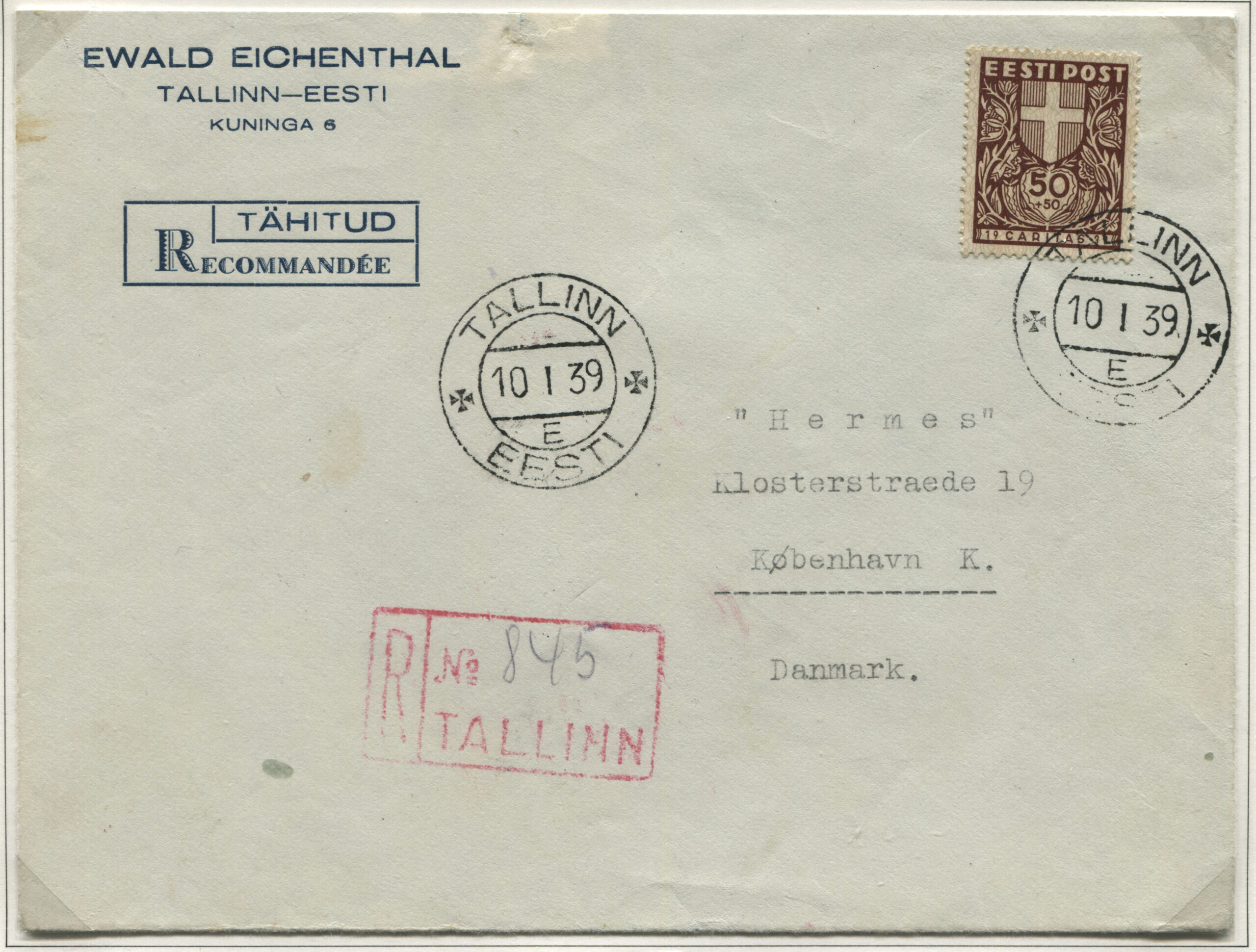 ERMi koguRahvusvahelise Margikogujate Seltsi ajakiri Estonia nr 12, 14.03.1936, lk 15Tähitud kiri, saadetud Tallinna 1.02.1936