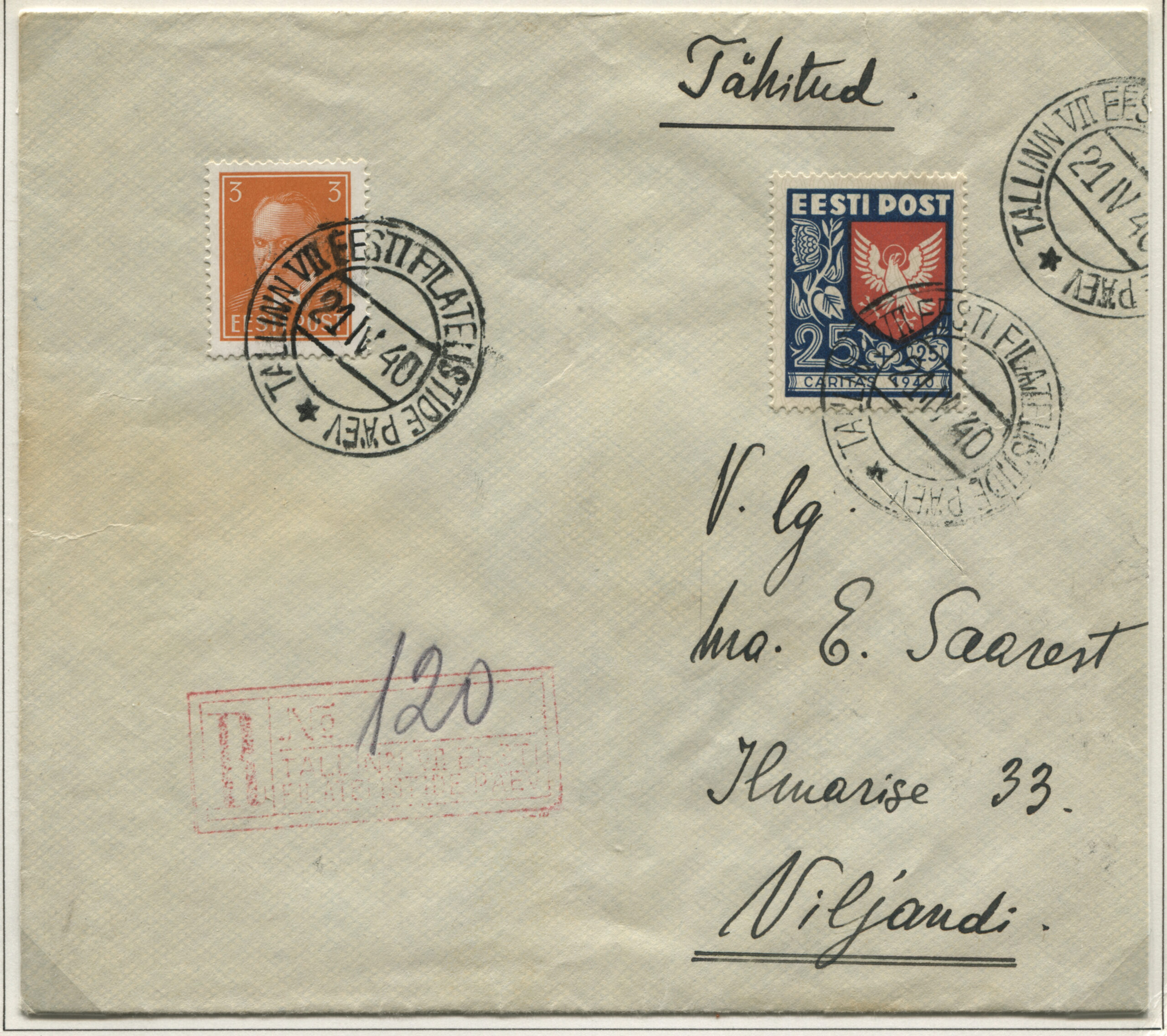 ERMi koguTähitud kiri Tallinnast 21.04.1940 Viljandisse. Tempel: Tallinna VII Eesti Filatelistide Päev, 21.04.1940.