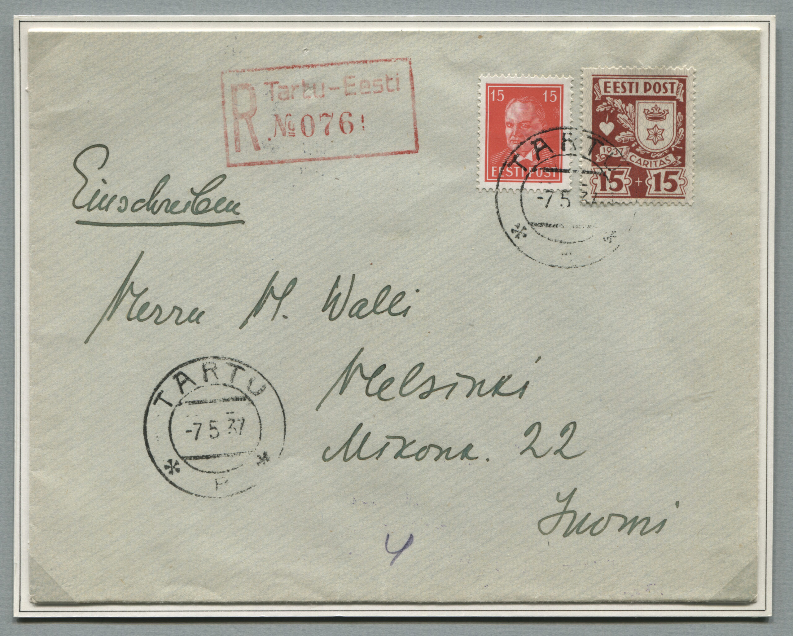 ERMi koguTähitud kiri Tartust 7.05.1937 Helsingisse 8.05.1937
