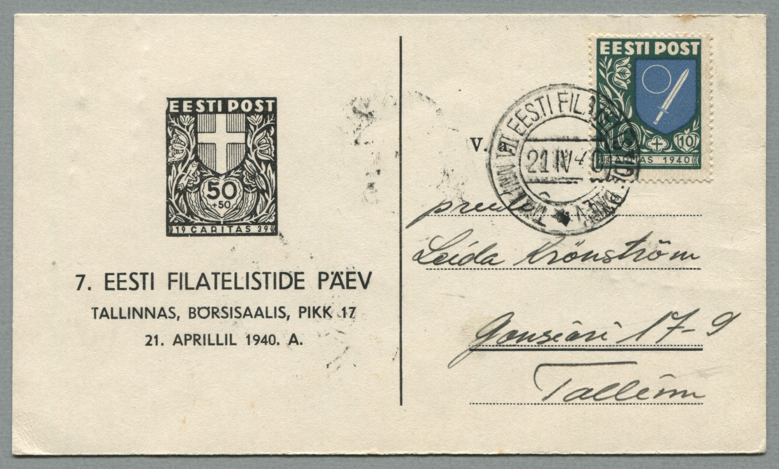 ERMi koguPostkaart ja tempel: 7. Eesti Filatelistide päev Tallinnas, Börsisaalis, Pikk 17. 21. aprillil 1940.