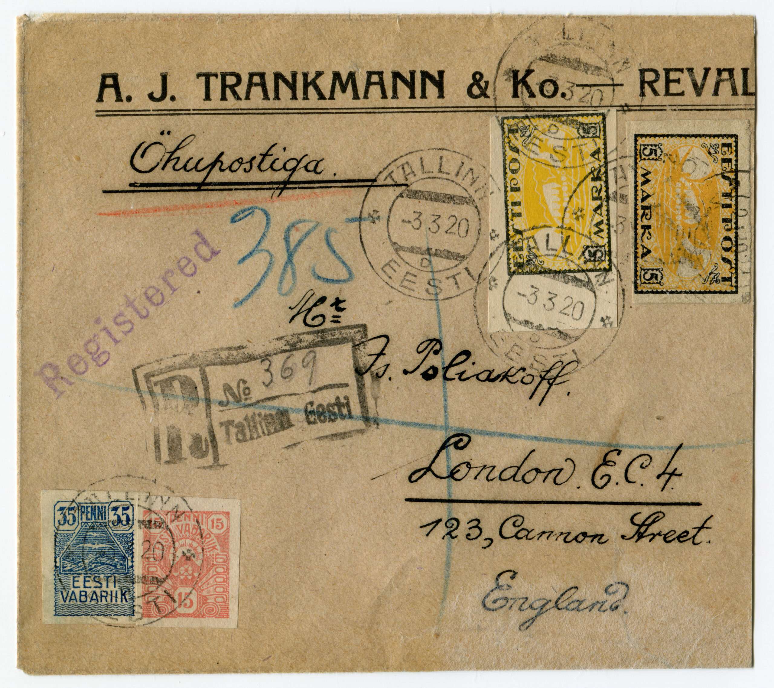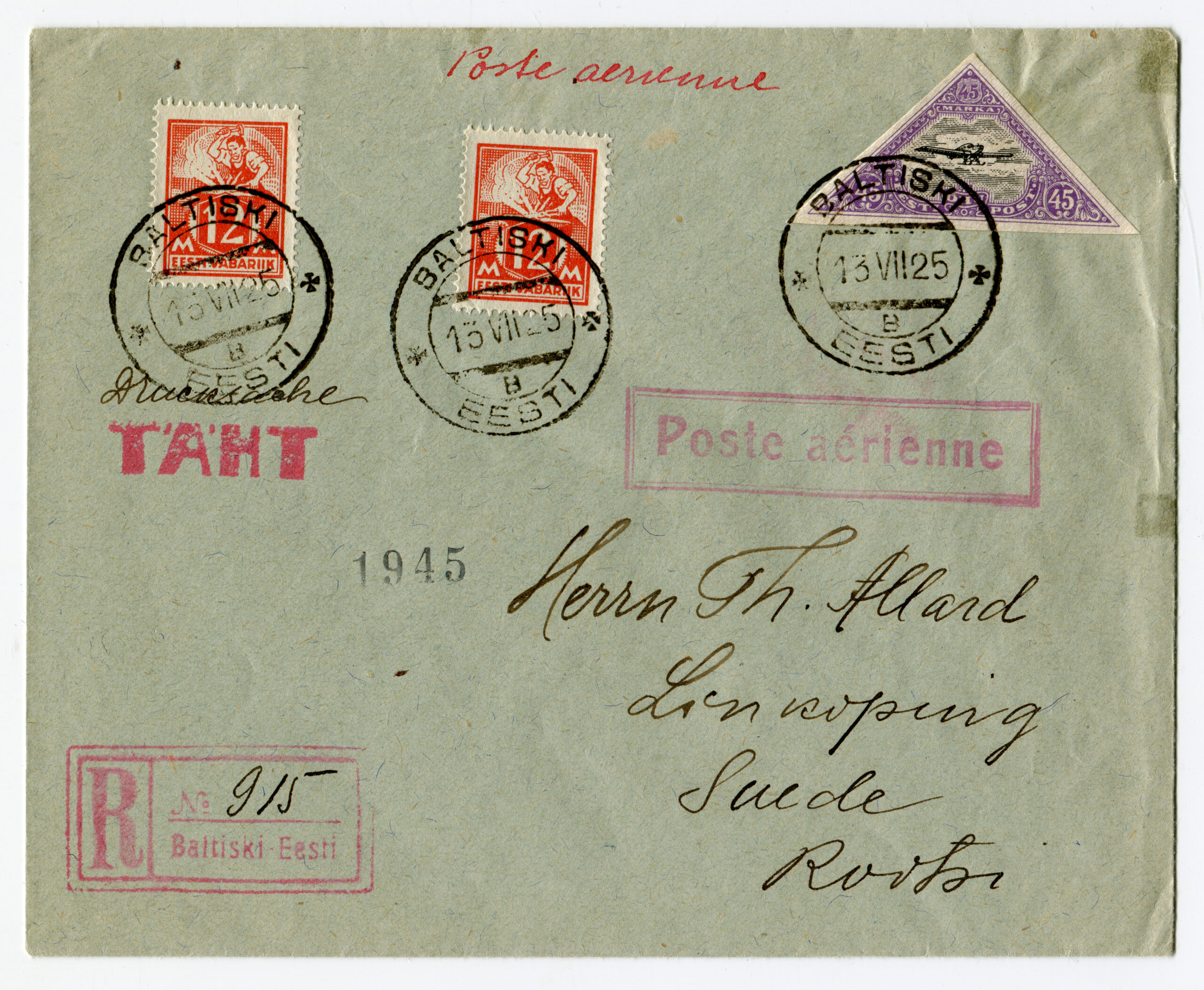 Kiri on saadetud Paldiskist 3.11.1923 Linköpingisse (Rootsi) Helsingi kaudu.