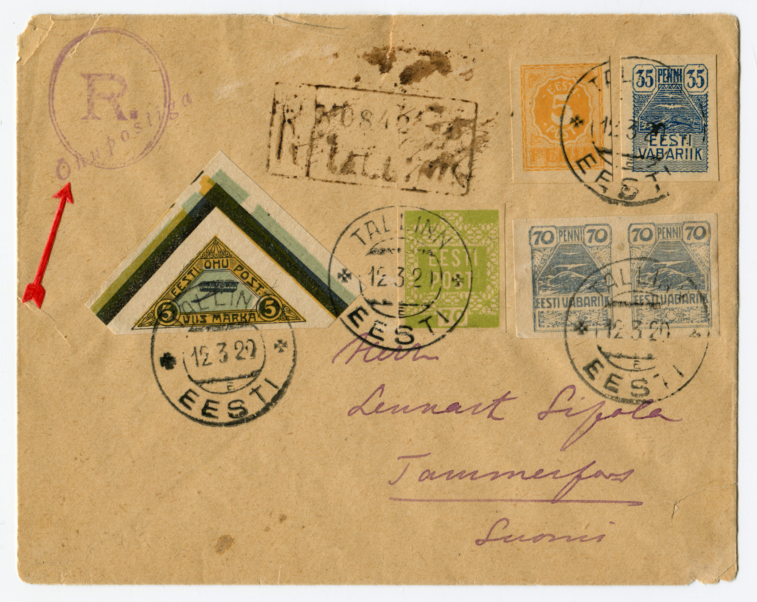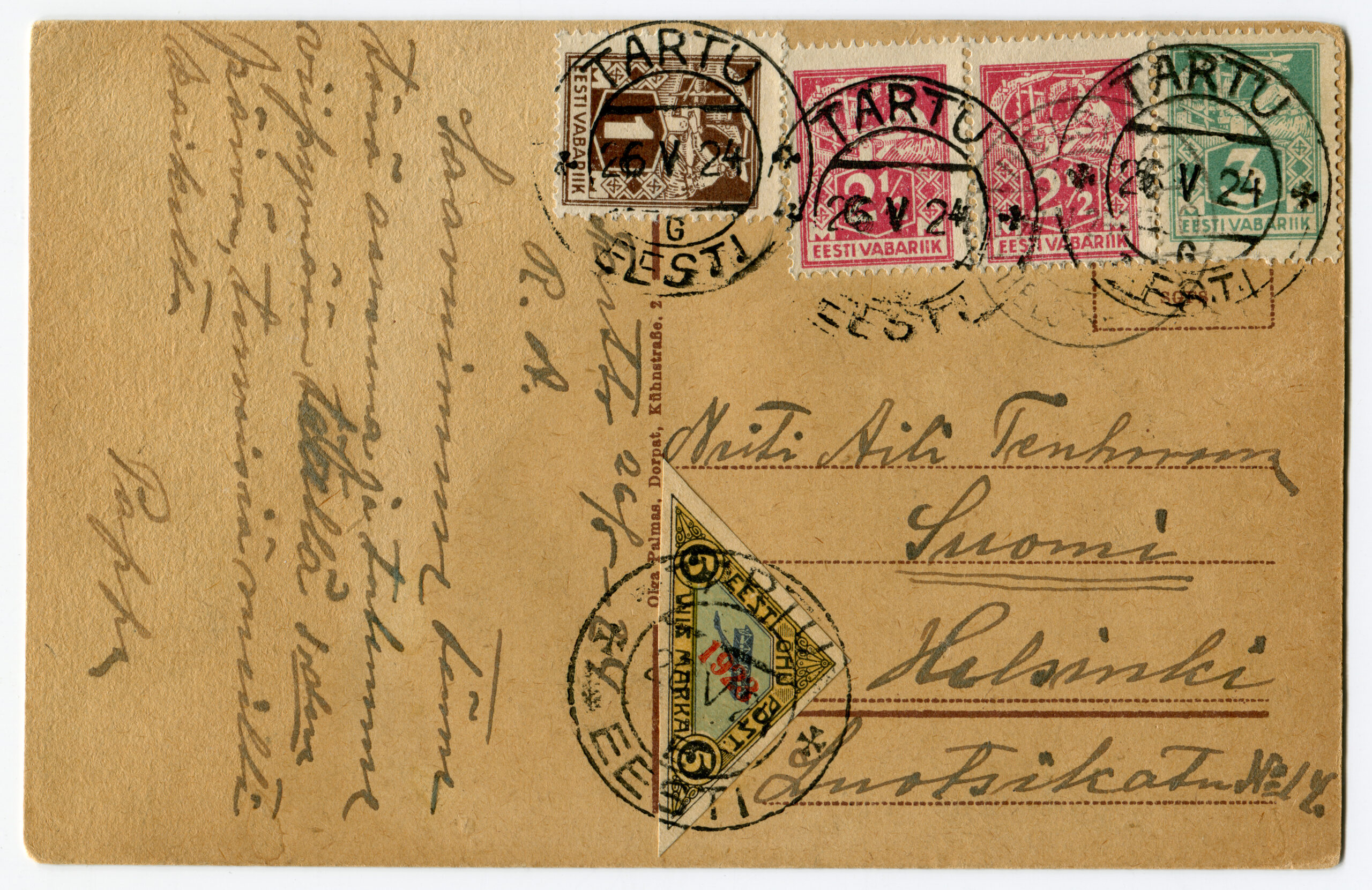 Kiri on saadetud Tallinnast 28.11.1923 Helsingisse 1.12.1923.