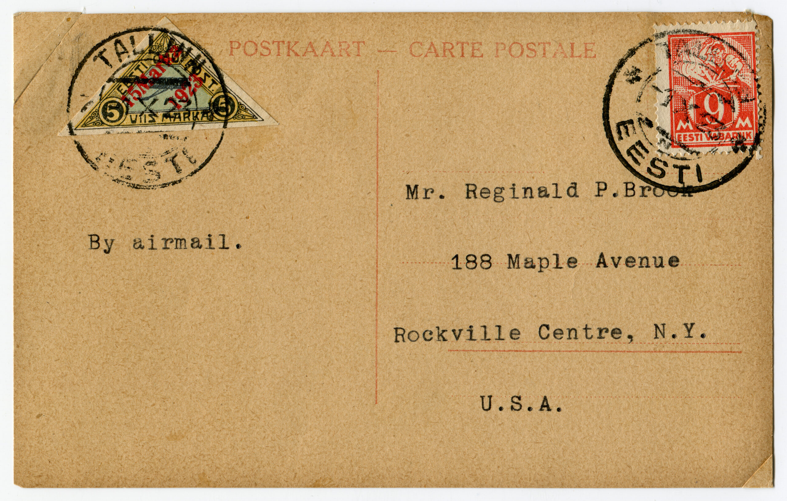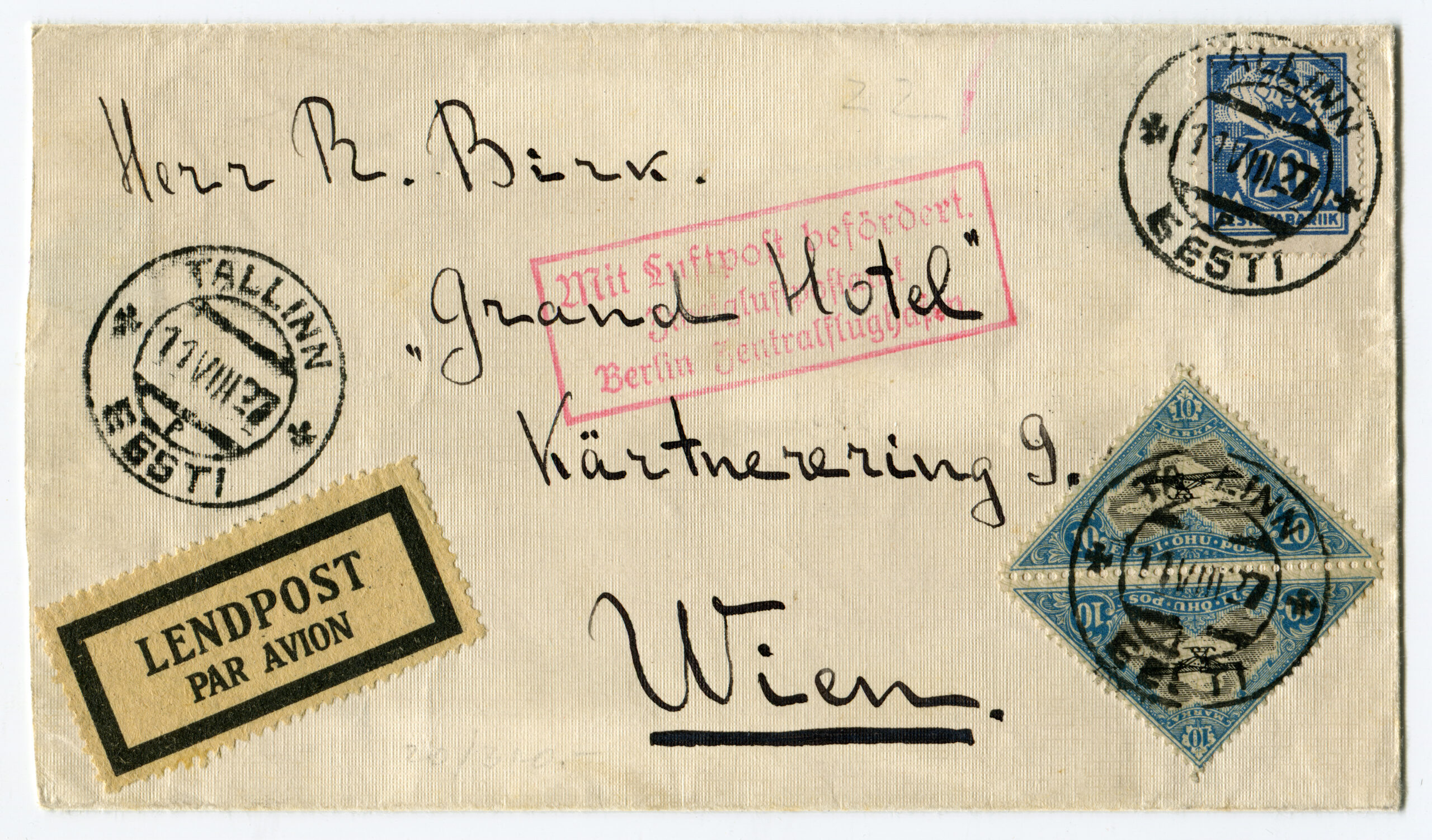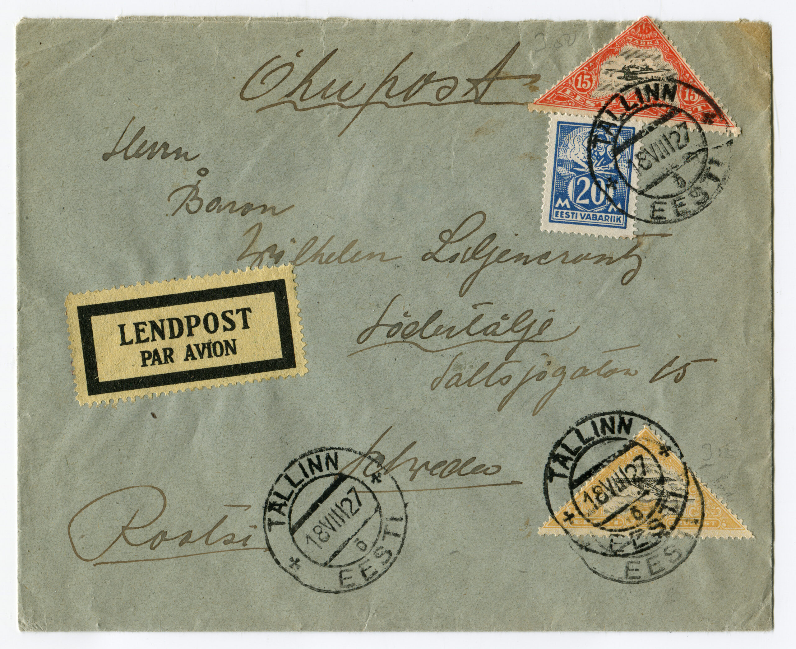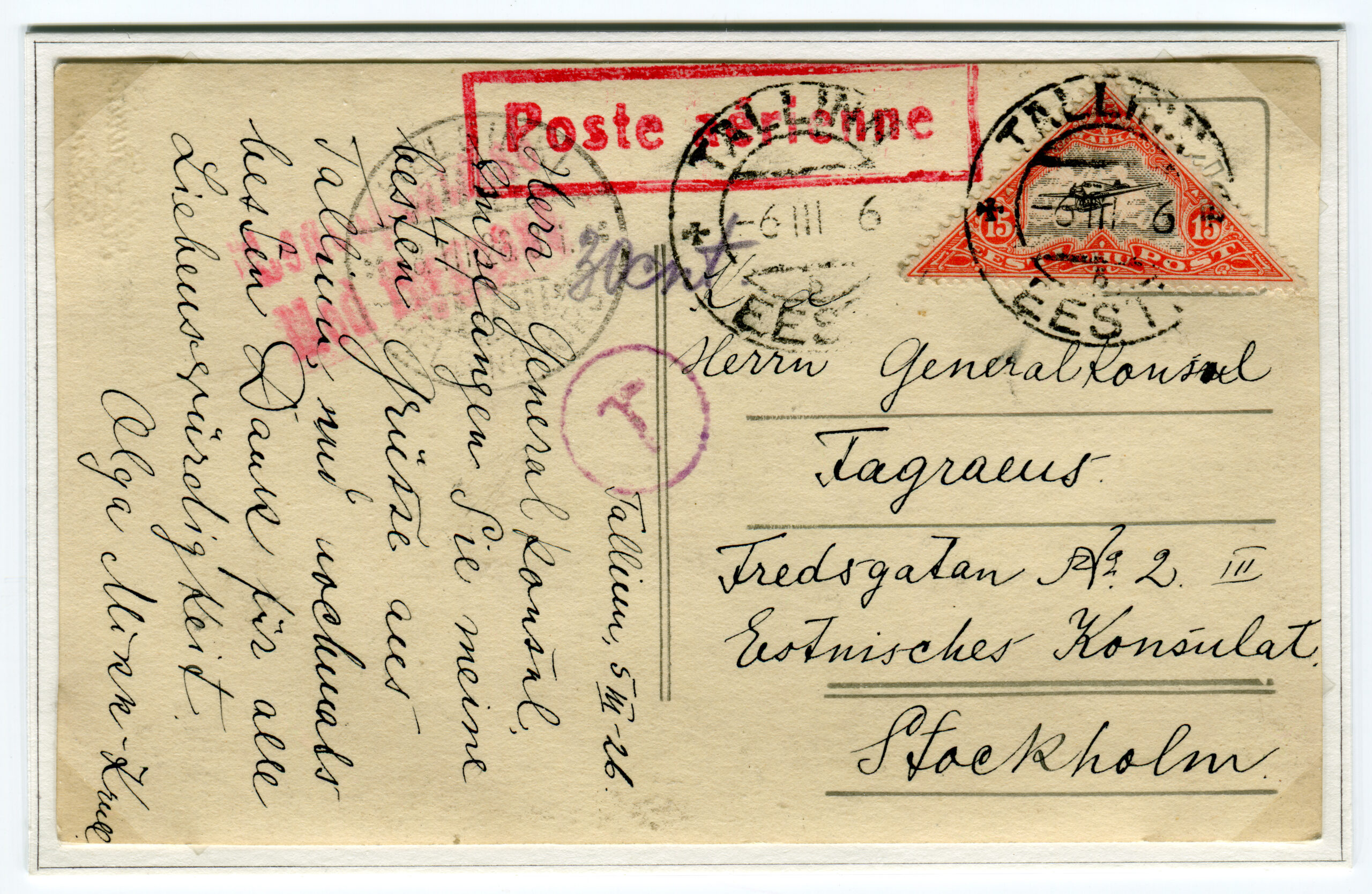 Õhupostikiri on saadetud Tallinnast 6.07.1926 Helsingisse.