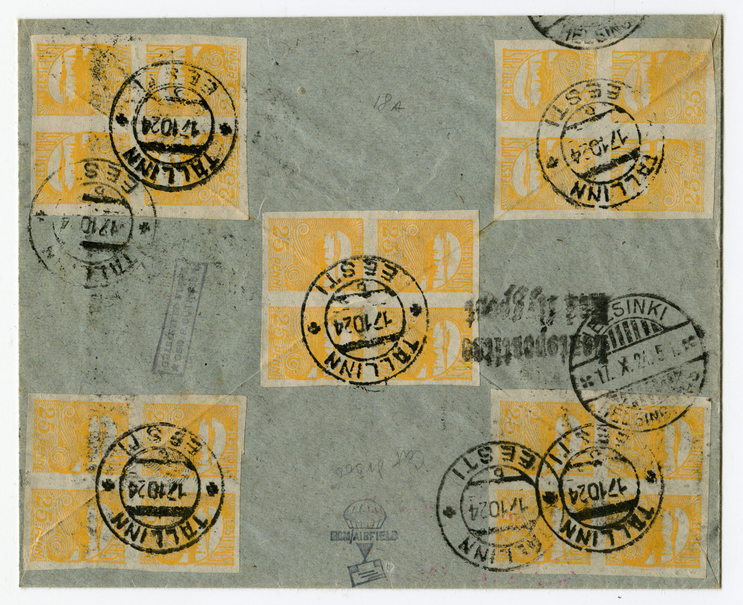 Tähitud õhupostikiri Tallinnast 17.10.1924 Helsingisse 17.10.1924.