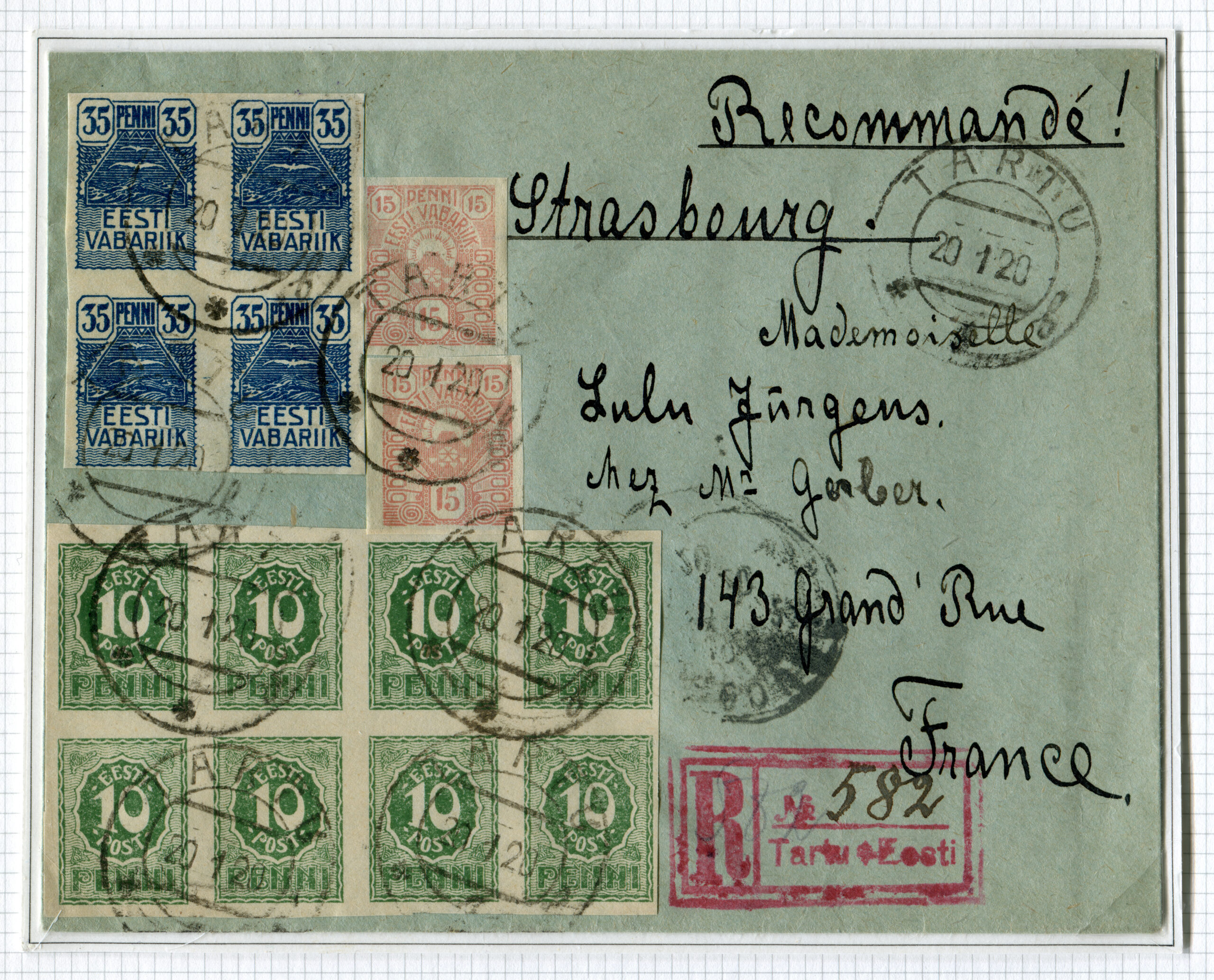 Kiri on saadetud Tartust 18.10.1923 läbi Berliini Münchenisse (Berliini õhupostitempel 20.10.1923).