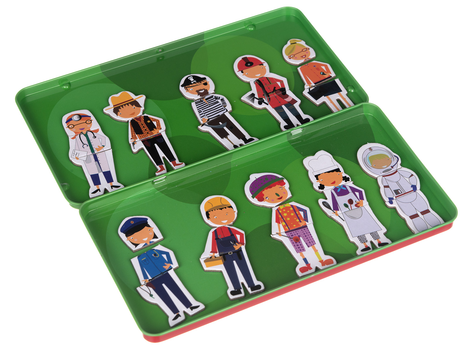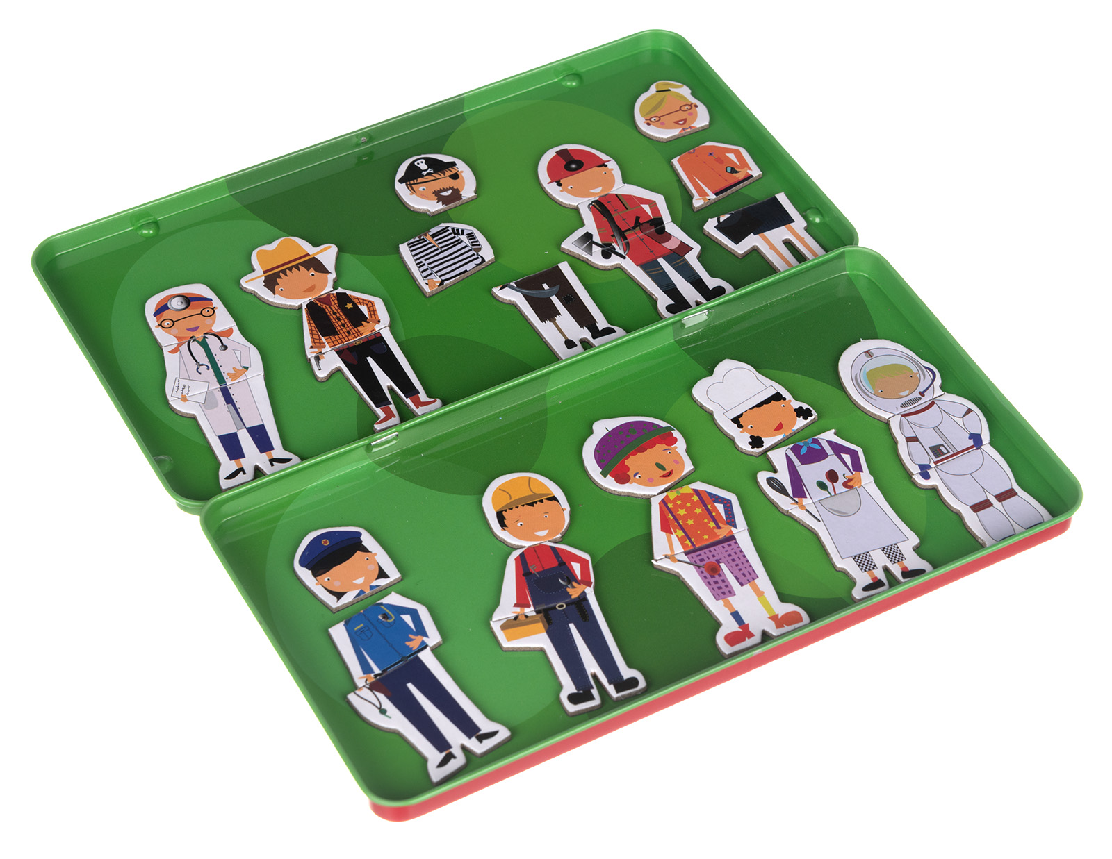 Loominguline magnetmäng sobib lastele alates 3. eluaastast. Karbis on 10 tegelaskuju. Iga ameti esindaja koosneb kolmest tükist: pea, keha ja jalad. Vali tükid ja pane kokku just selline tegelane, kelleks soovid saada, kui oled suureks sirgunud. Saad ka naljategelasi luua, pane kokku mereröövel ja arst või kokk ning kosmonaut. Mängu saab mängida nii üksi kui ka mitmekesi.