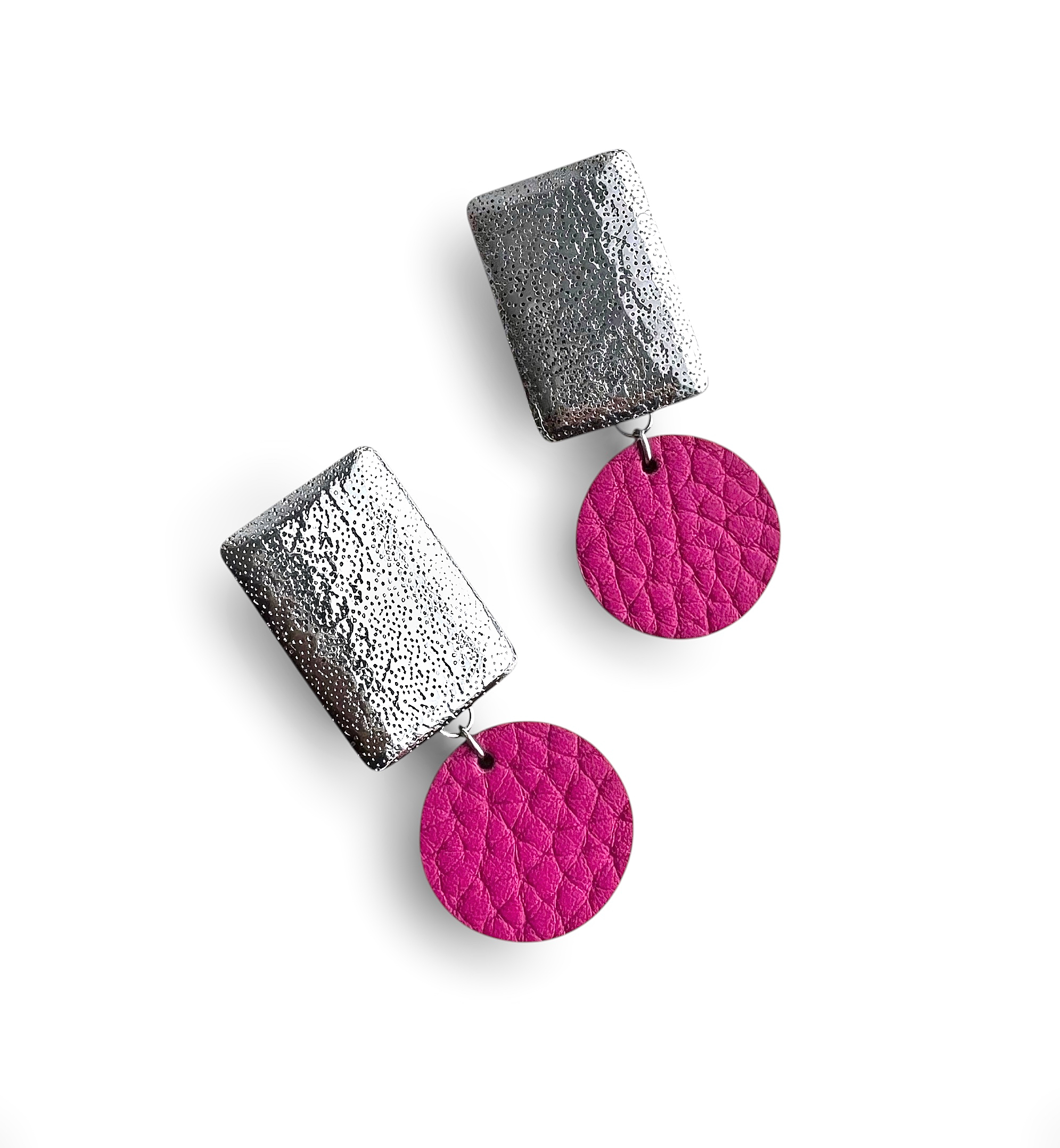 Hõbedased kõrvarõngad roosast nahast