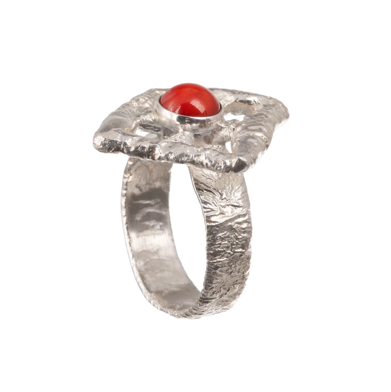 Sõrmus on valmistatud sulatustehnikas ja ehet kaunistab korall.