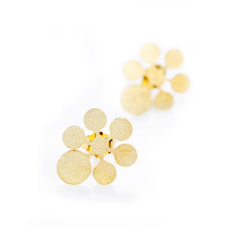 Hõbekõrvarõngad on kullatud, mõõduks 1,5cm x 1,3cm.