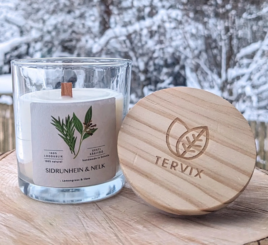 Looduslik puidust tahiga lõhnaküünal.