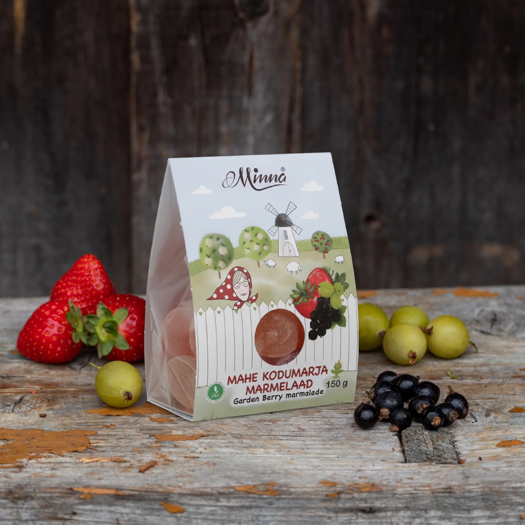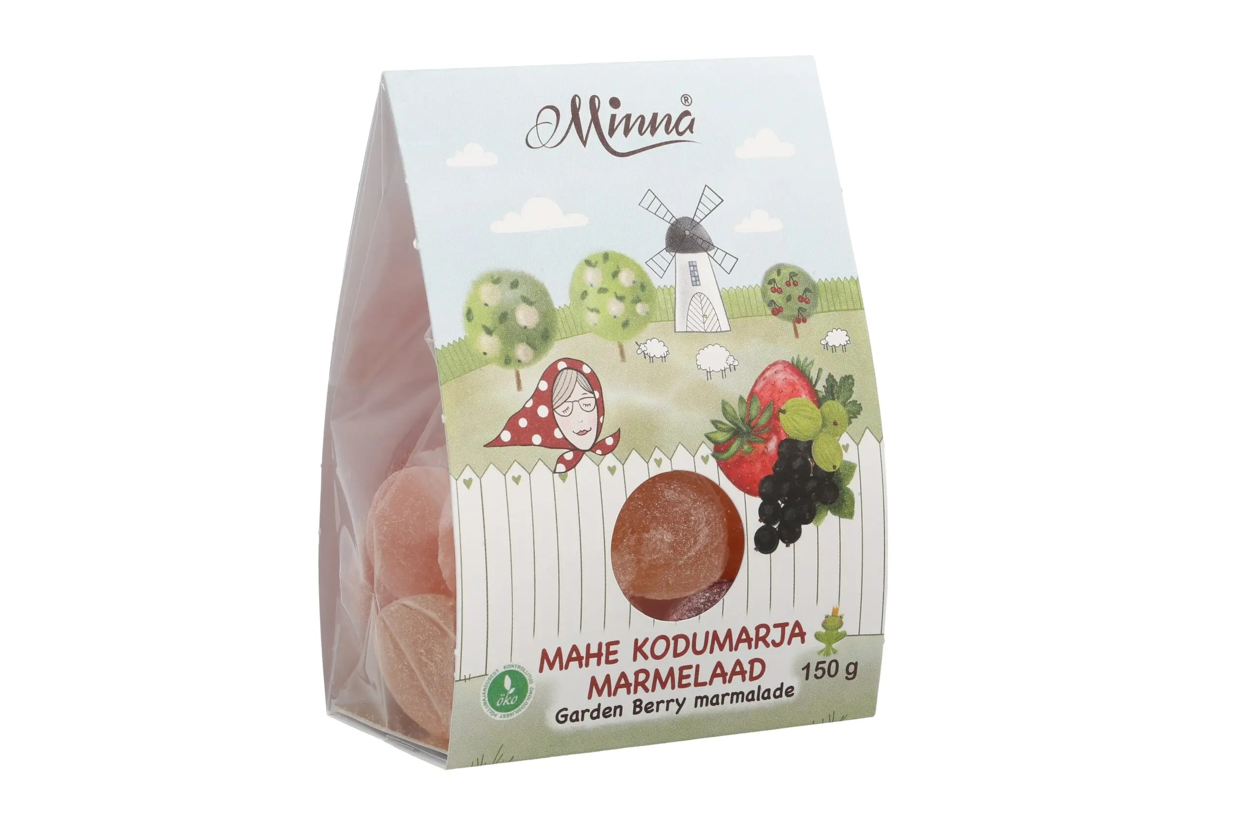 Vanaema Minna eeskujul valmivad kõik marmelaadid käsitööna ja ei sisalda säilitus- ega värvaineid. Marjad, puu- ja köögiviljad ostetakse kokku mahekasvatajatelt ning metsamarjad on korjatud Eestimaa mahealadelt! Puhastatud andidest valmistatakse püree, mis annab marmelaadikommidele naturaalse värvi.