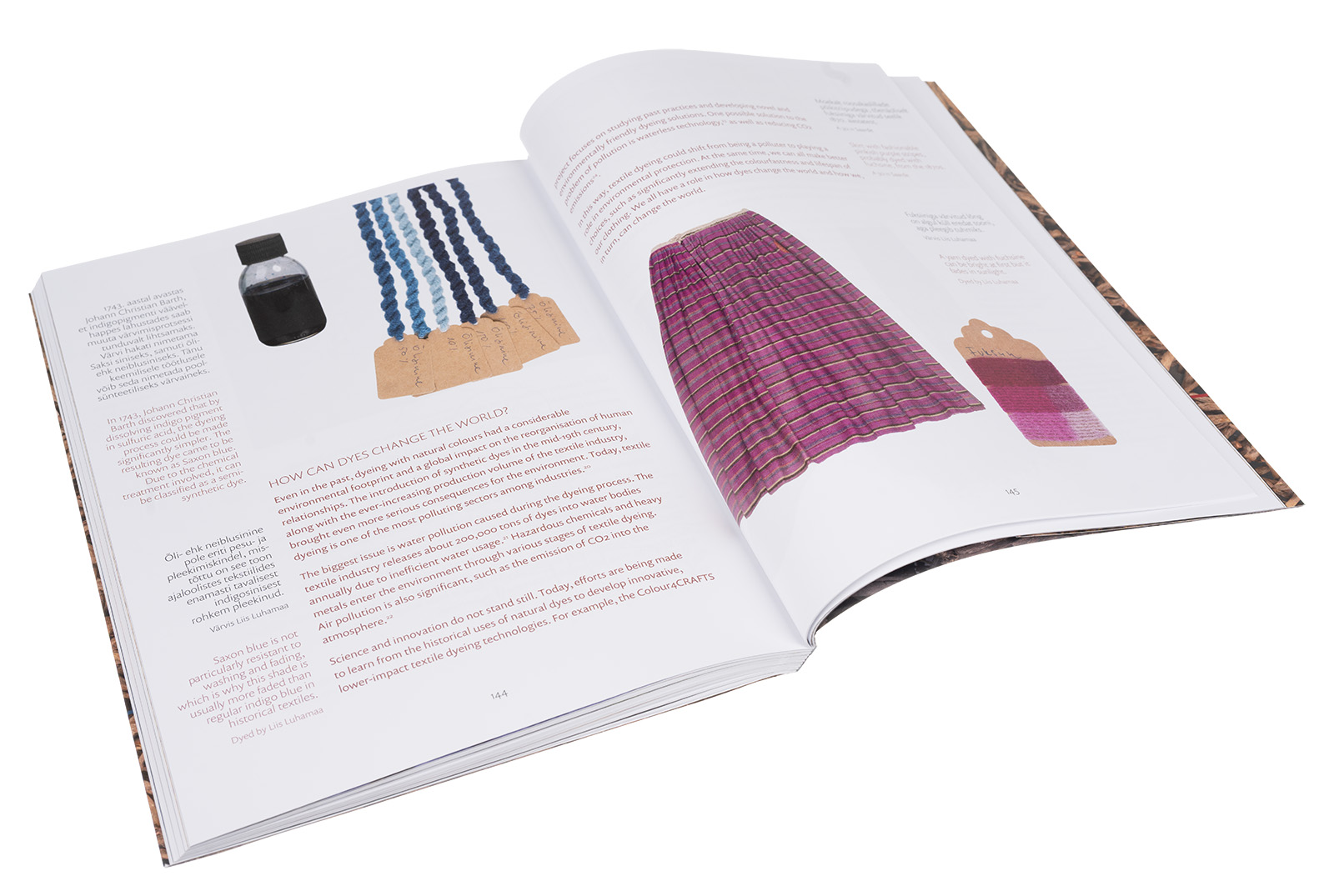 Sinerõigas ja brasilipuu, košenillitäid ja rauarikas muda, paakspuukoored ja värvi-indigopõõsas on näited looduslikest materjalidest, millest saadud värvaineid on Eestis minevikus kasutatud. Mõned neist on kodumaised, teised jõudsid siia kaubanduse vahendusel. Siinne uurimisretk viib ajaloolise sinise, punase ja musta värvimise maailma. Ammused oskused on inspireerinud ka tänapäeva teadlasi ja tööstust. Tutvustame põnevaid lahendusi, milleni on jõutud loodussäästlikke tekstiilvärvimise viise otsides.