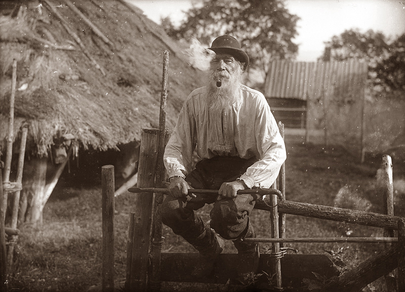 Fotol on Mummassaare ranna kalamees Pärtel Ribin (76 a) piipu tegemas. Juuni 1913. Fk 214: 12. Lõuendi suurus on 60 cm x 85 cm.