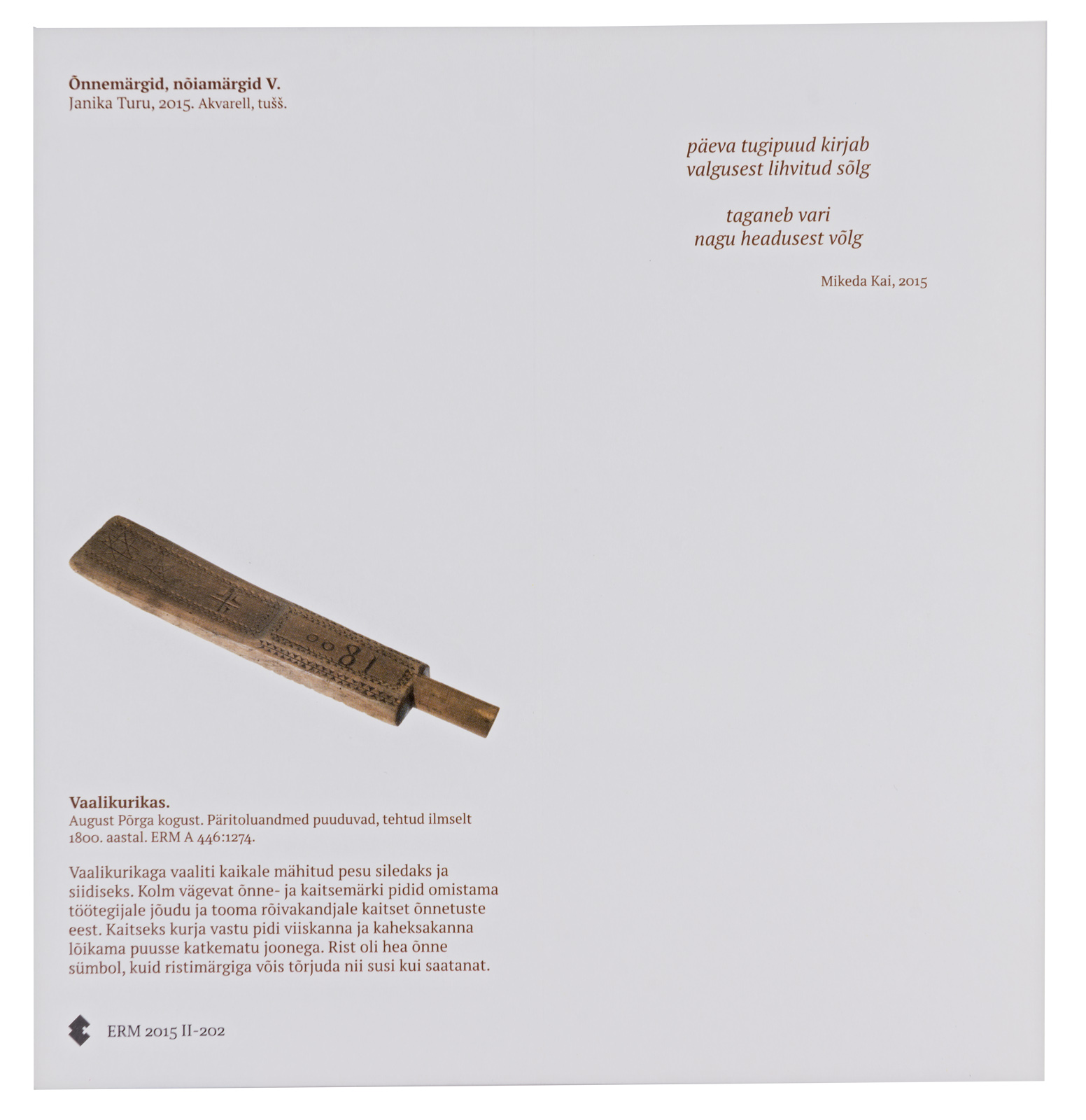Vaalikurikaga vaaliti kaikale mähitud pesu siledaks ja siidiseks. Kolm vägevat õnne- ja kaitsemärki pidid omistama töötegijale jõudu ja tooma rõivakandjale kaitset õnnetuste eest. Kaitseks kurja vastu pidi viiskanna ja kaheksakanna lõikama puusse katkematu joonega. Rist oli hea õnne sümbol, kuid ristimärgiga võis tõrjuda nii susi kui saatanat.