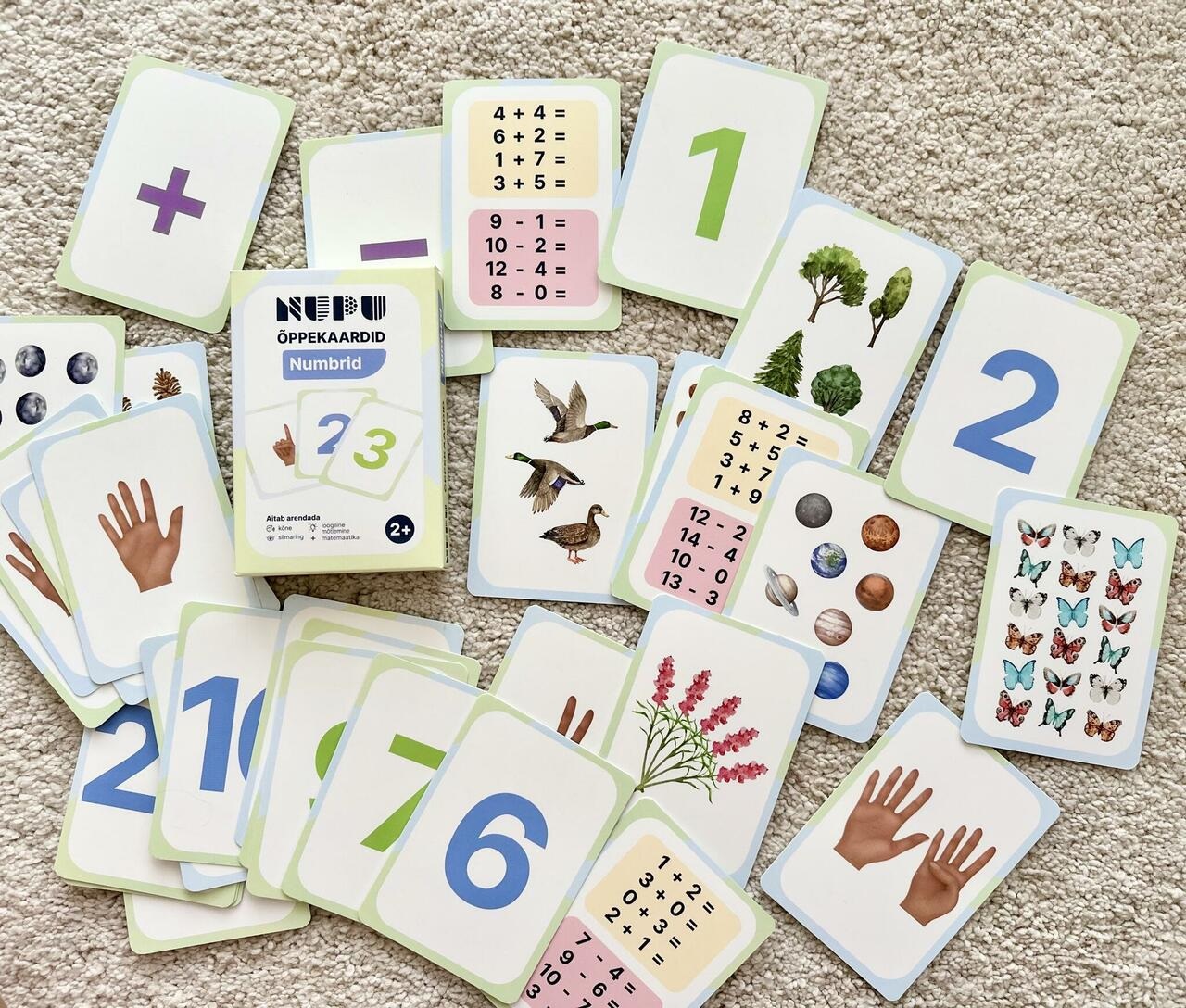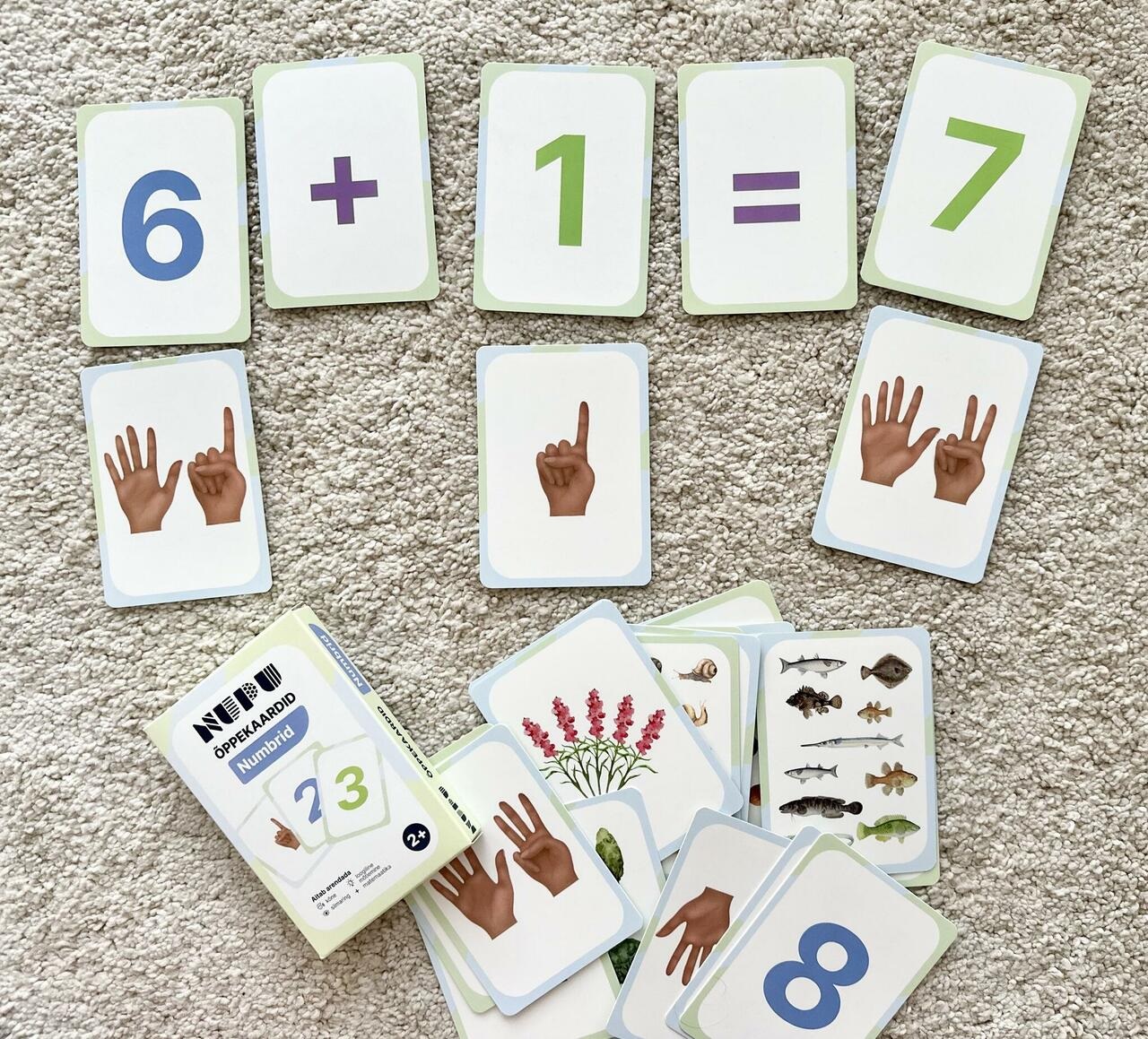 Numbrikaardid aitavad lastel õppida numbreid ja loendamist 1-20 ning liitmist ja lahutamist. Realistlikud joonistused on paeluvad ning lausa kutsuvad mängima. Pildid sõrmedest aitavad lastel neile loomupärasemalt algust teha loendamise ja arvutamisega ning numbrite kontseptsiooni lihtsamini mõista. Matemaatika alustaladest paremat arusaamisst toetavad värvidega eristatud tehted ja paaris/paaritud arvud.