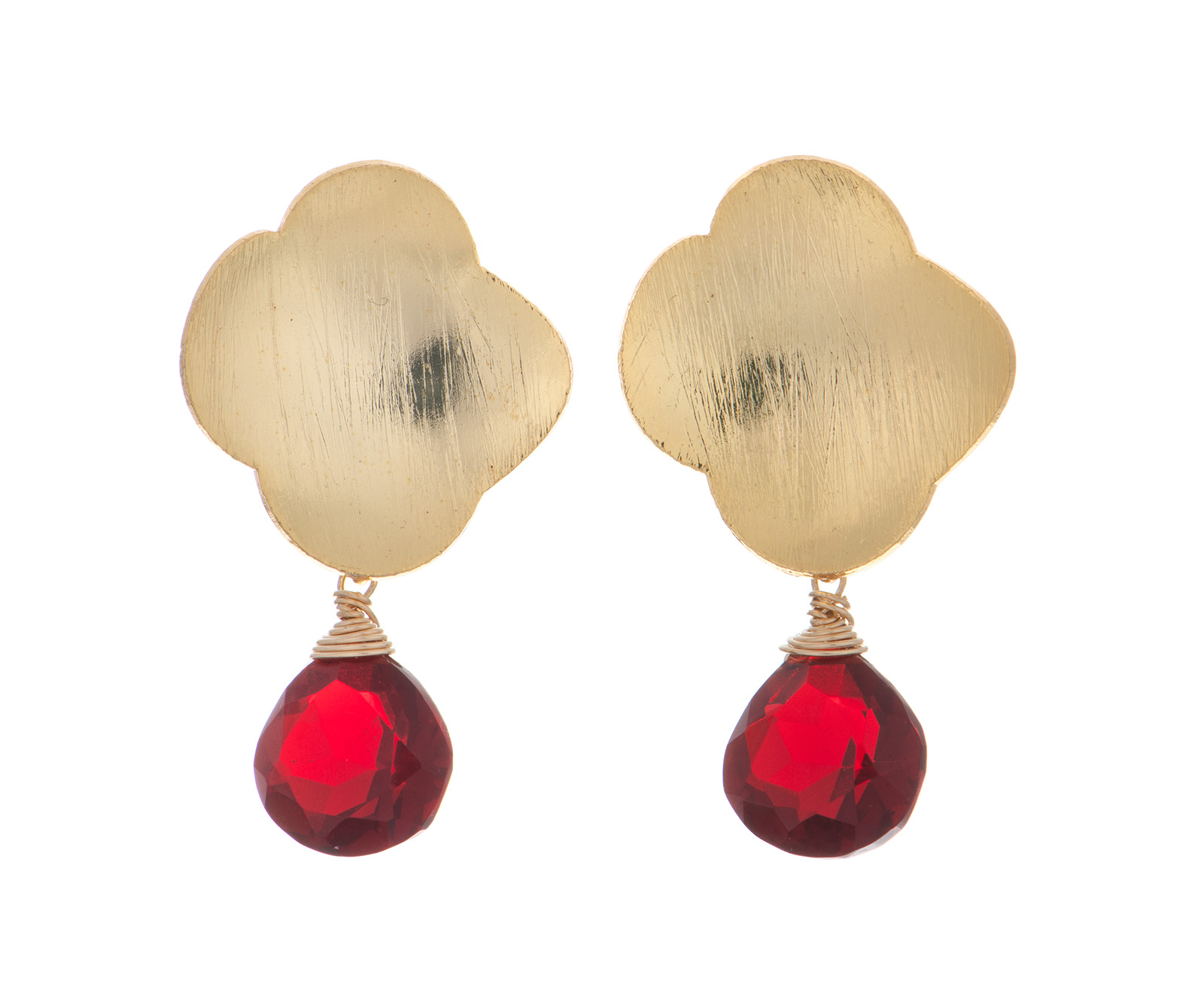 Kõrvarõngaid kaunistavad 1,5 cm pikkused punased kvartsist kivikesed ja kullaga kaetud hõbedast pilvekesed.