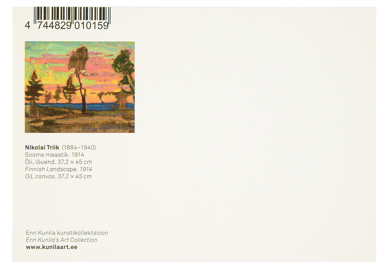 Postkaardil kunstnik Nikolai Triigi maal “Soome maastik”.