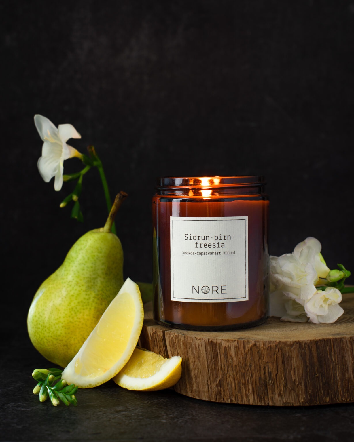 Nore küünlad valmivad käsitööna kõrgekvaliteedilistest aroomiõlidest ning 100% taimsest kookos-rapsivahast, mis ei sisalda parafiini ega sünteetilisi lisandeid. Kõrge kookose sisaldus küünlavahas pikendab põlemisaega ning tagab küünla puhta põlemise.