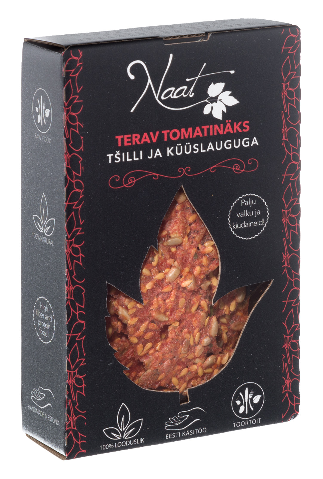 Koostisosad: tomatid 74%, linaseemned, päevalilleseemned, kõrvitsaseemned, sibul , küüslauk 1.1%, mäesool, tšilli 0.5%, naat.