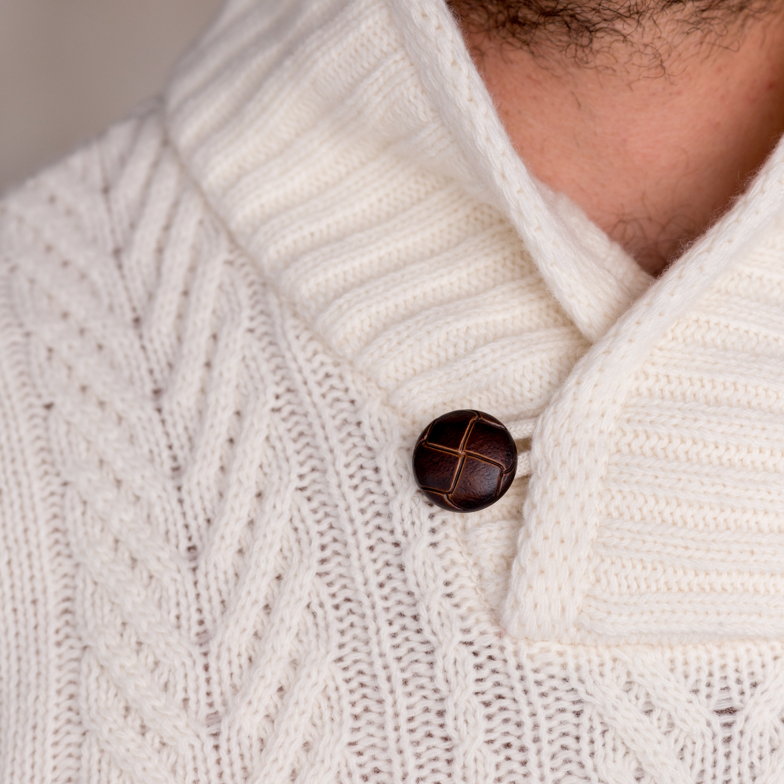Mõnusalt pehme ja paks klassikalise sallkraega valget värvi kampsun. Heeringasaba mustrit meenutavad palmikute read jooksevad üle terve kampsuni.