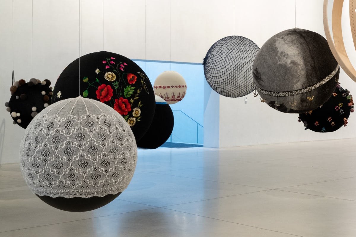 Fuajees tiirleb 32 suurt kera, mis on Eesti erinevatest paikadest pärit 32 meistri kätetöö. Kuraatorid Mae Kivilo ja Kaarel Kuusk on ajatute tehnikate planetaariumis esile tõstnud rahvapärimuse kirjad ja rütmid.