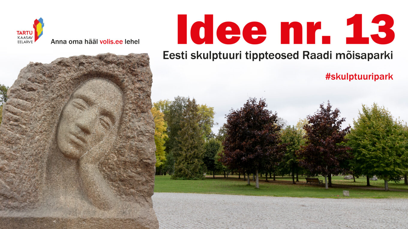 Kaks suurt muuseumit – Eesti Rahva Muuseum ja Tartu Kunstimuuseum on ühendanud jõud ja esitanud Raadi skulptuuripargi idee Tartu kaasava eelarve hääletusele. Raadi skulptuuripargis soovime püsivalt eksponeerida valdavalt graniidist Eesti tippskulptorite loomingut.