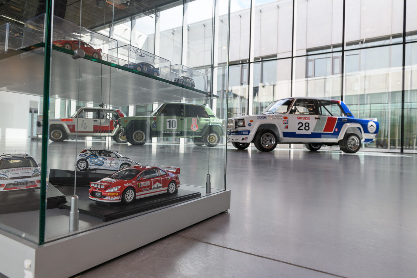 Mudelautod on pärit Rauno Paltseri erakogust. Paltser on ralliautode mudeleid kogunud juba üle 15 aasta, tema kollektsioonis on pea 600 autot, millest 255 on ERMis väljapanekul. Kõige haruldasemad ja hinnalisemad mudelid on valmistatud nullist. Paltser on spetsiifiliste mudelite saamiseks pöördunud kleepse ja mudeleid eritellimusena tegevate poodide ja meistrimeeste poole üle maailma. Mudelid on käsitsi kokku pandud ning kirglik kollektsionäär on umbes kolmandikule neist ka sõitjate autogrammid peale küsinud. Lõviosa väljapanekust on miniatuurid Eesti autosportlaste masinatest erinevatel etappidel. Nende seas on Ott Tänak, Markko Märtin, Karl Kruuda, Uno Aava ja mitmete teiste rallimeeste automudelid.