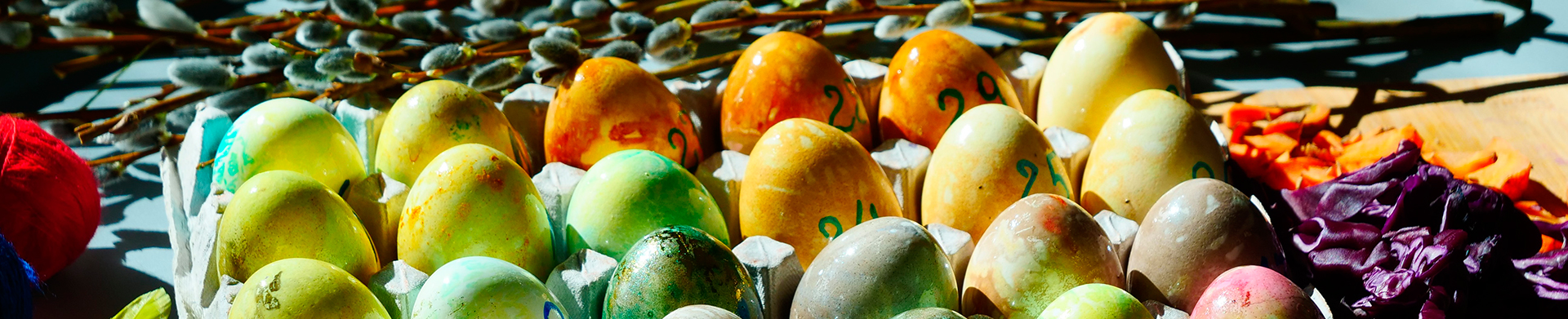 Veeretamiseks võib värvitud munad kodunt ise kaasa võtta või kasutada kohapealseid loomka juures.