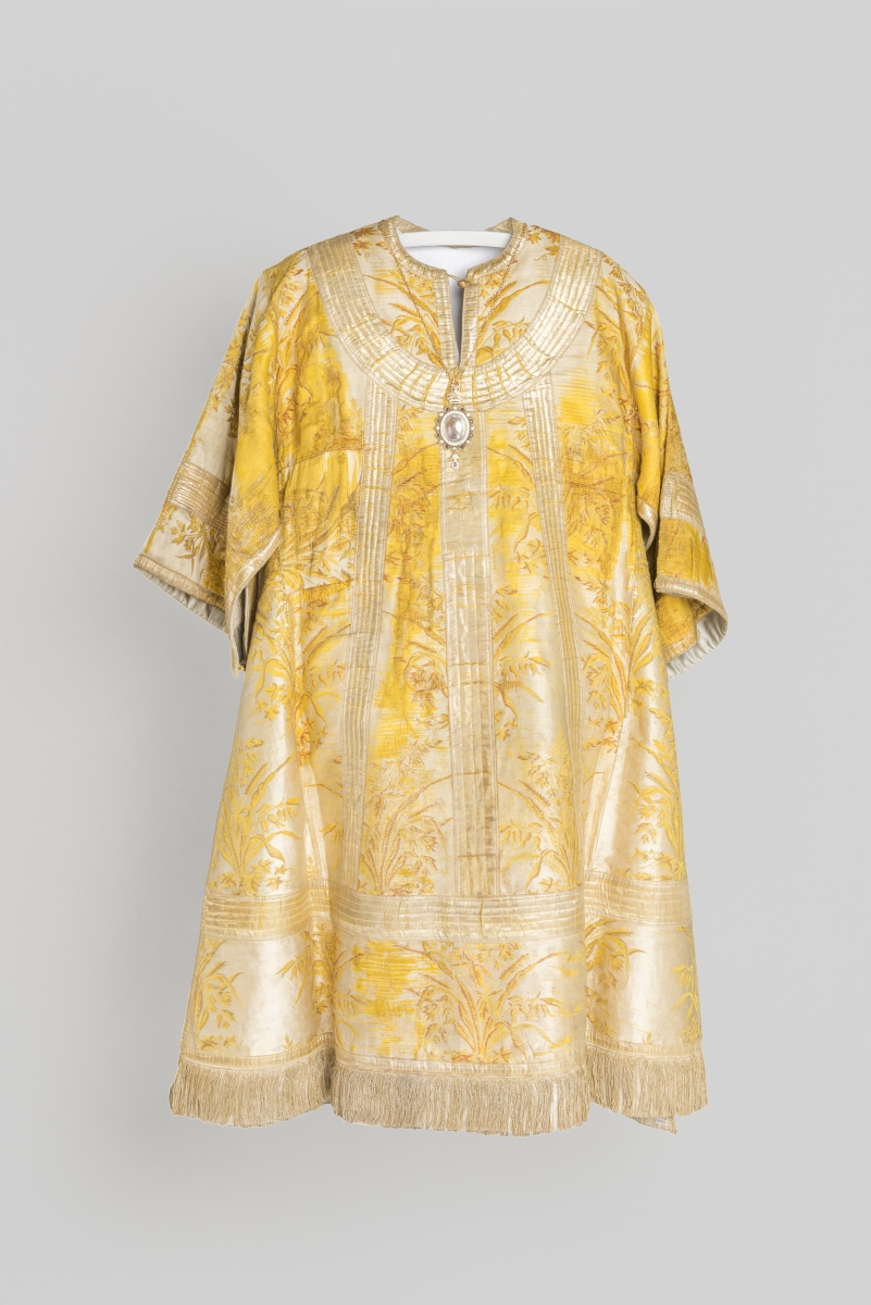 ERMi püsinäitusel „Kohtumised“ on õigeusu vitriinis väljas püha piiskop Platoni rüü ja panaagia ehk väike Jumalasünnitaja ikoon.