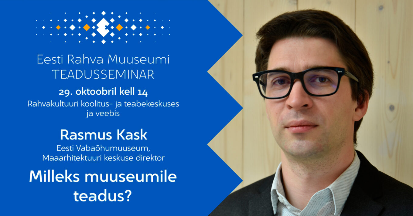 Eesti Rahva Muuseumi teadusseminaride sarjas toimub reedel, 29. oktoobril kell 14 seminar teemal „Milleks muuseumile teadus?“. Seminaril peab ettekande Eesti Vabaõhumuuseumi Maaarhitektuuri keskuse direktor Rasmus Kask.